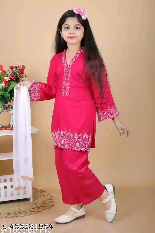 Traditional New Trending Kids Girls Kurta Pyjama And Dupatta Set for Diwali
