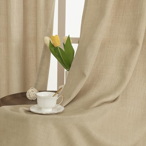 Light Filtering Linen Curtains 63 Inch 52W x 63L Pack of 2 Natural Tan