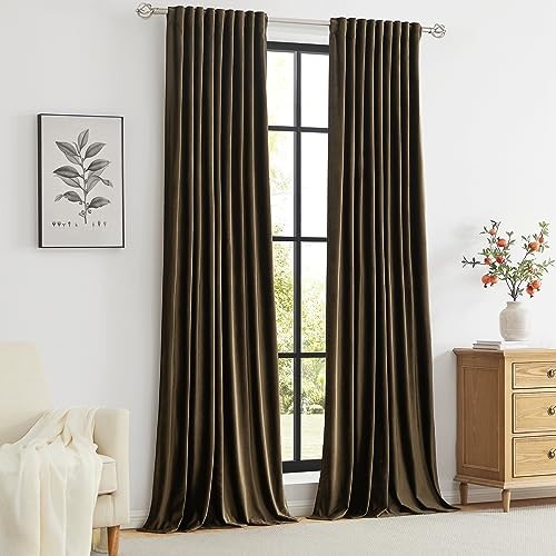 Velvet Curtains 90 inch Long for Living Room,Set 52W x 90L Pack of 2 Brown