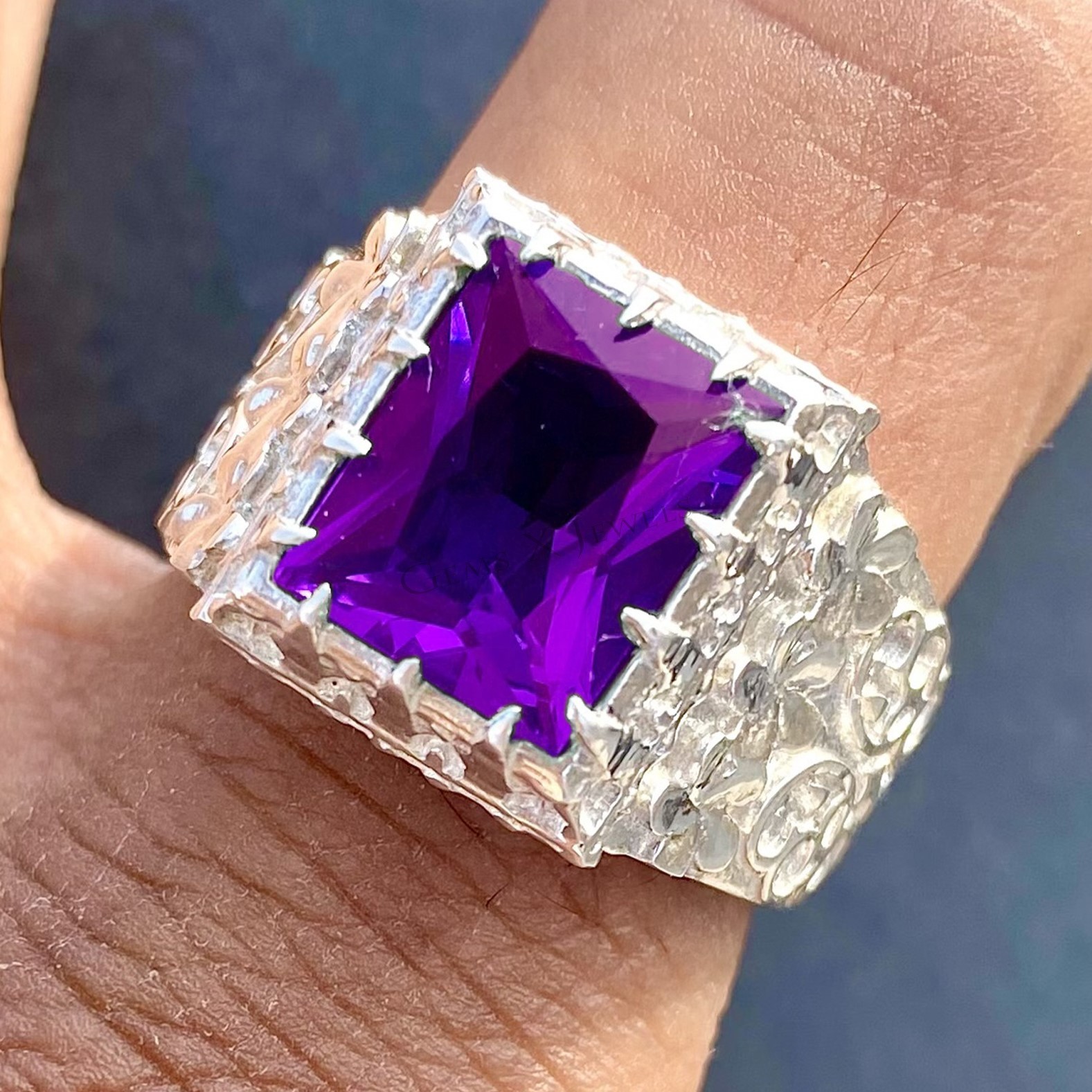 Natural Amethyst Gemstone Ring With 925 Sterling Silver Men's Engagement Ring