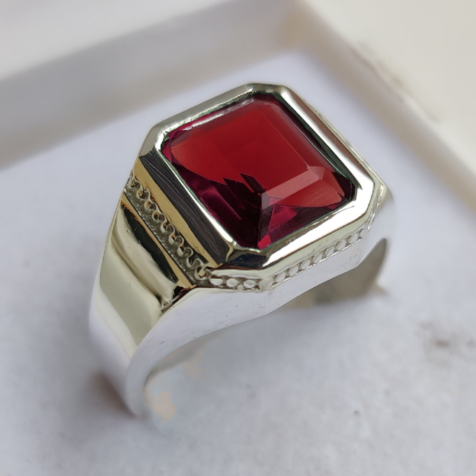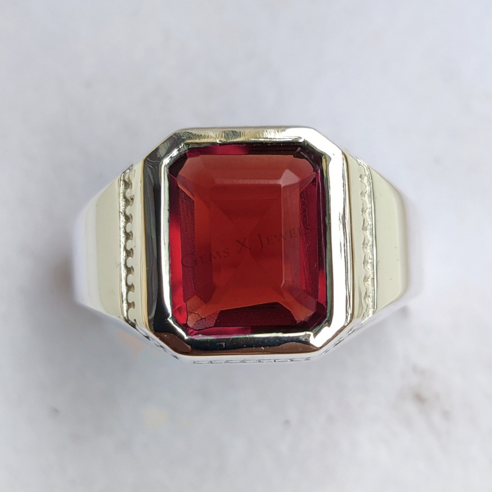 Natural Garnet Gemstone Ring, 925 Sterling Silver Ring, Statement Men's Ring