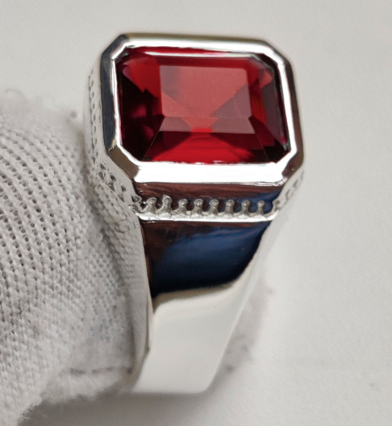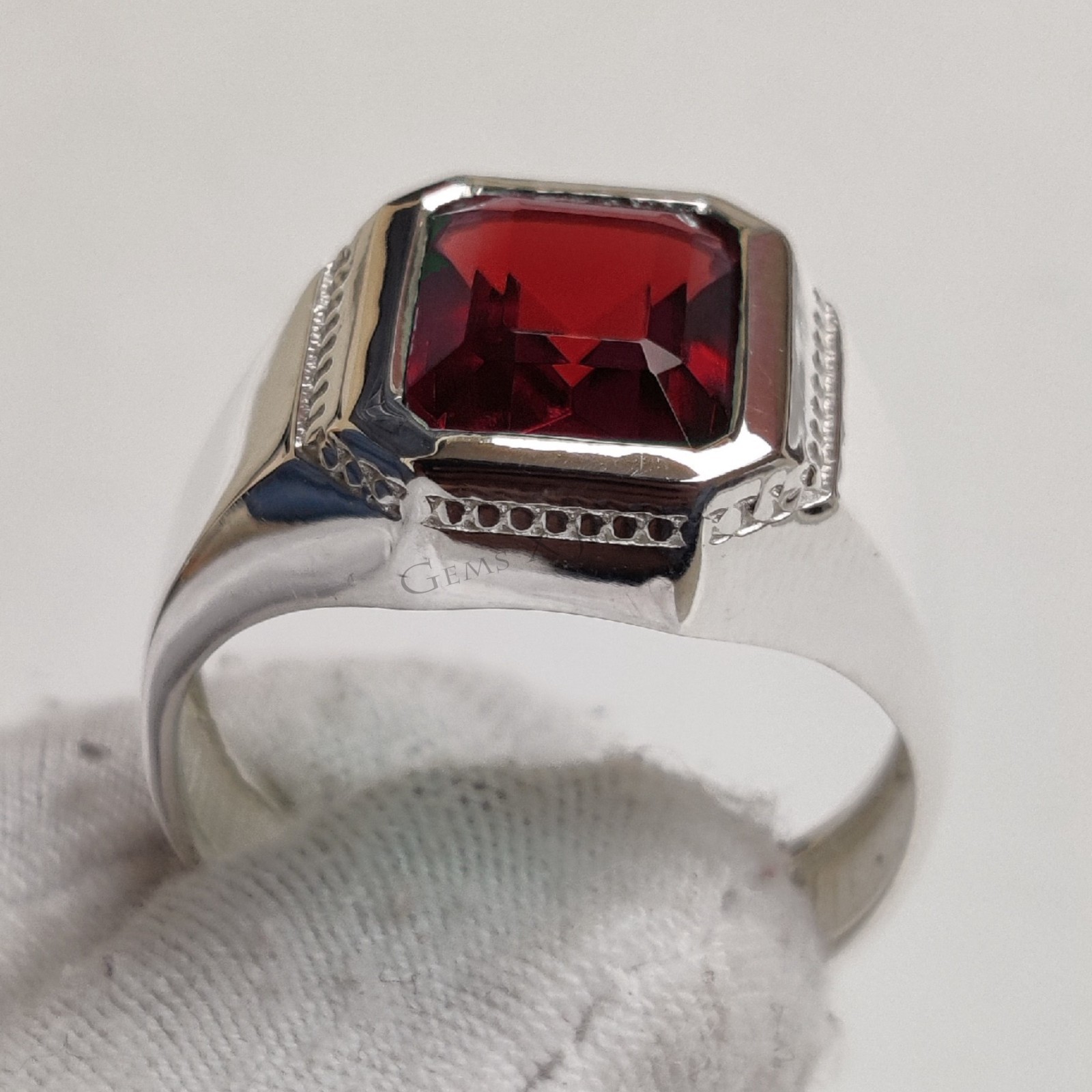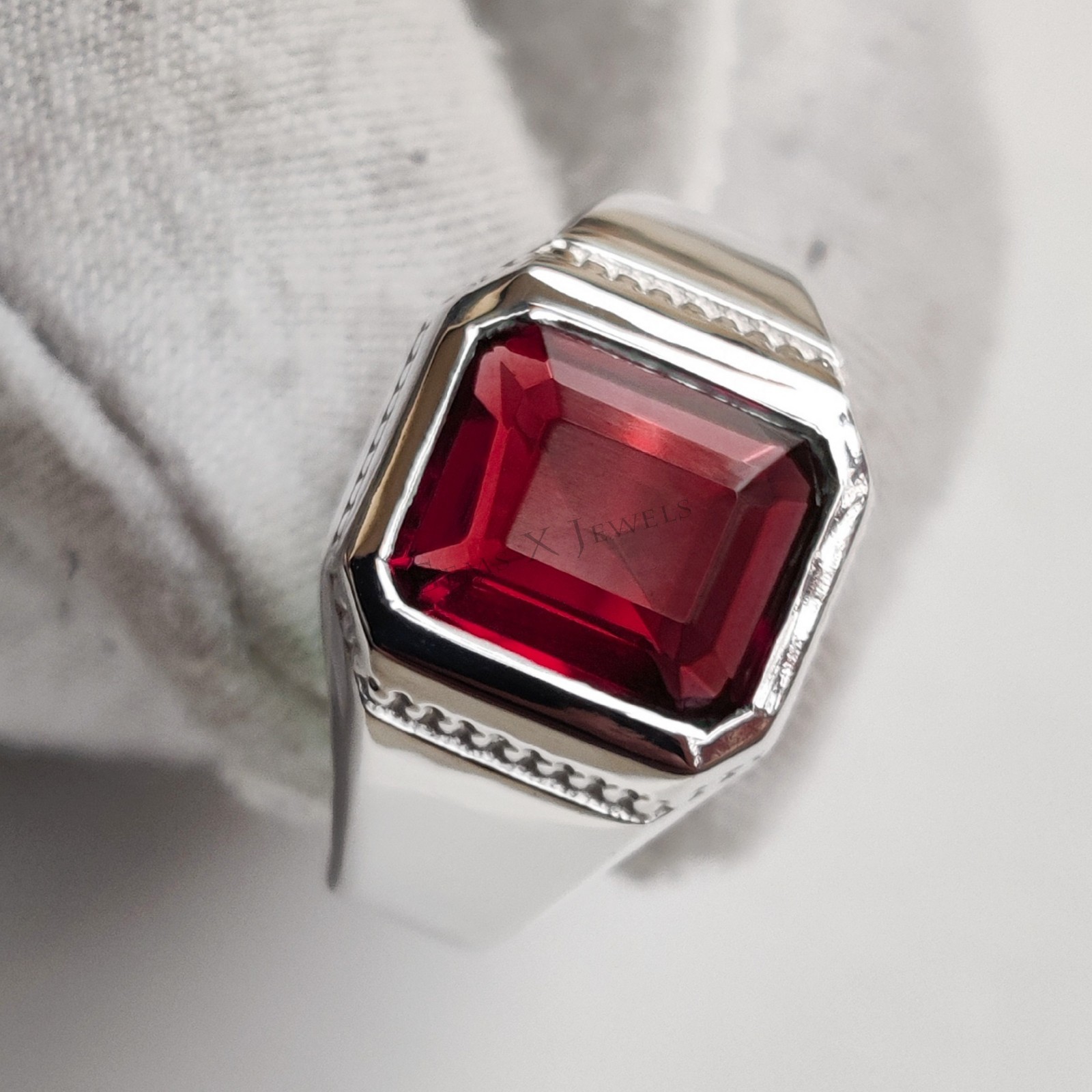 как выглядит Natural Garnet Gemstone Ring, 925 Sterling Silver Ring, Statement Men