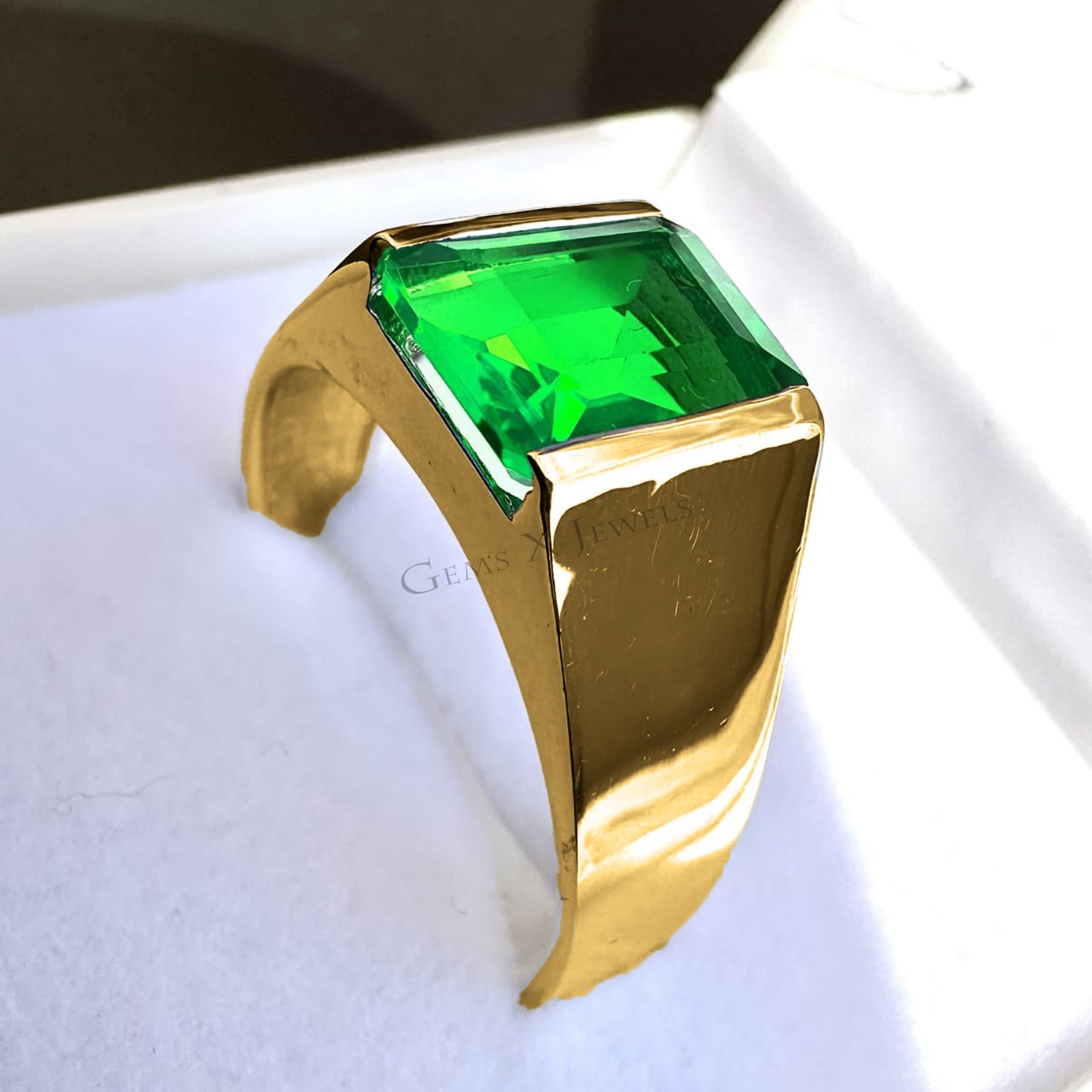 Green Emerald Gemstone Ring With 925 Sterling Silver Men's Gold Plated Ring