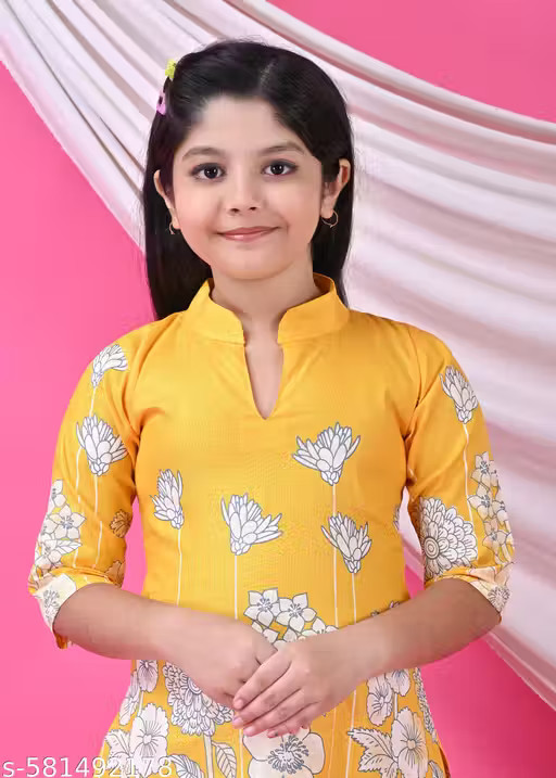 как выглядит Traditional Girls Floral Printed Kurta Palazzo Set Trendy Rayon Kurti фото