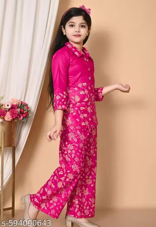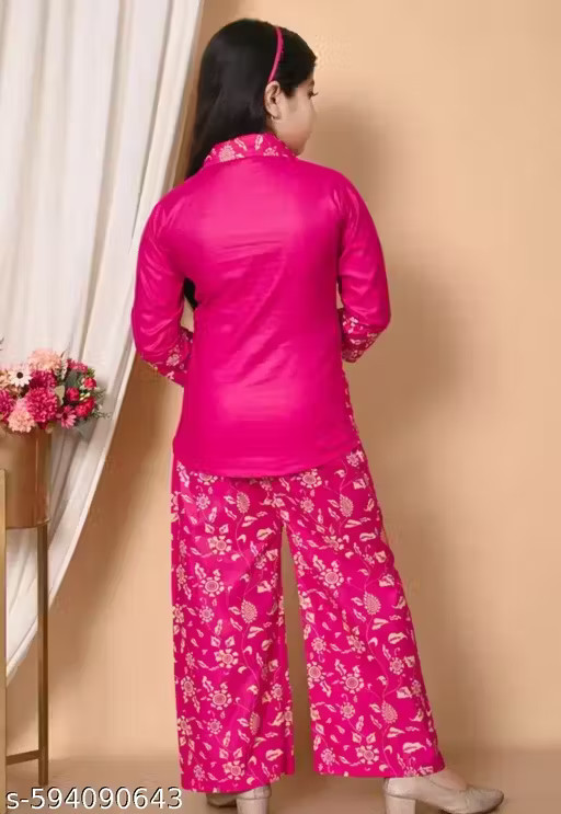 Traditional Girls Printed Kurta Palazzo Set Trendy Rayon Kurti For Festival