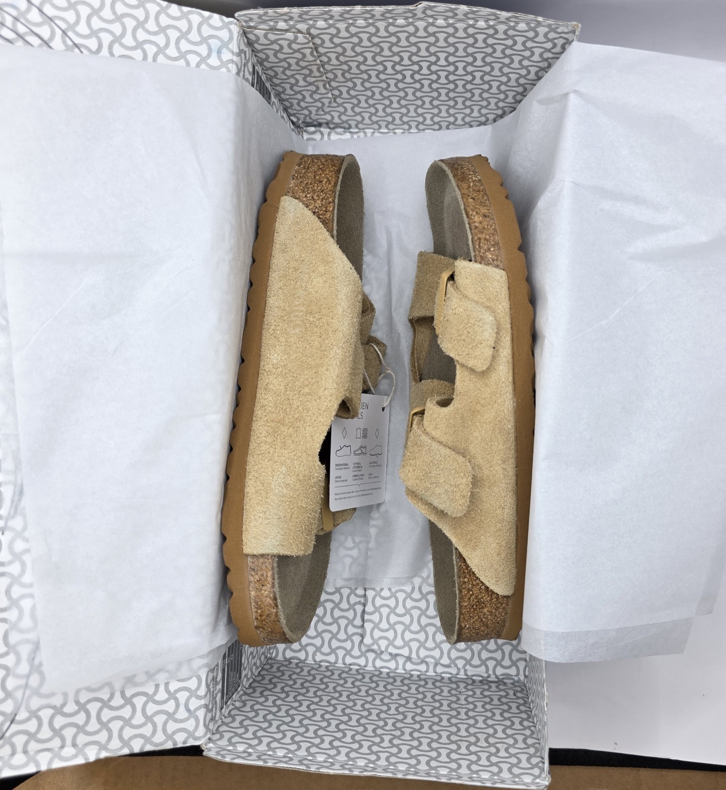 как выглядит Birkenstock Arizona Bs Suede Leather Soft Footbed Latte Cream Color Regular W фото