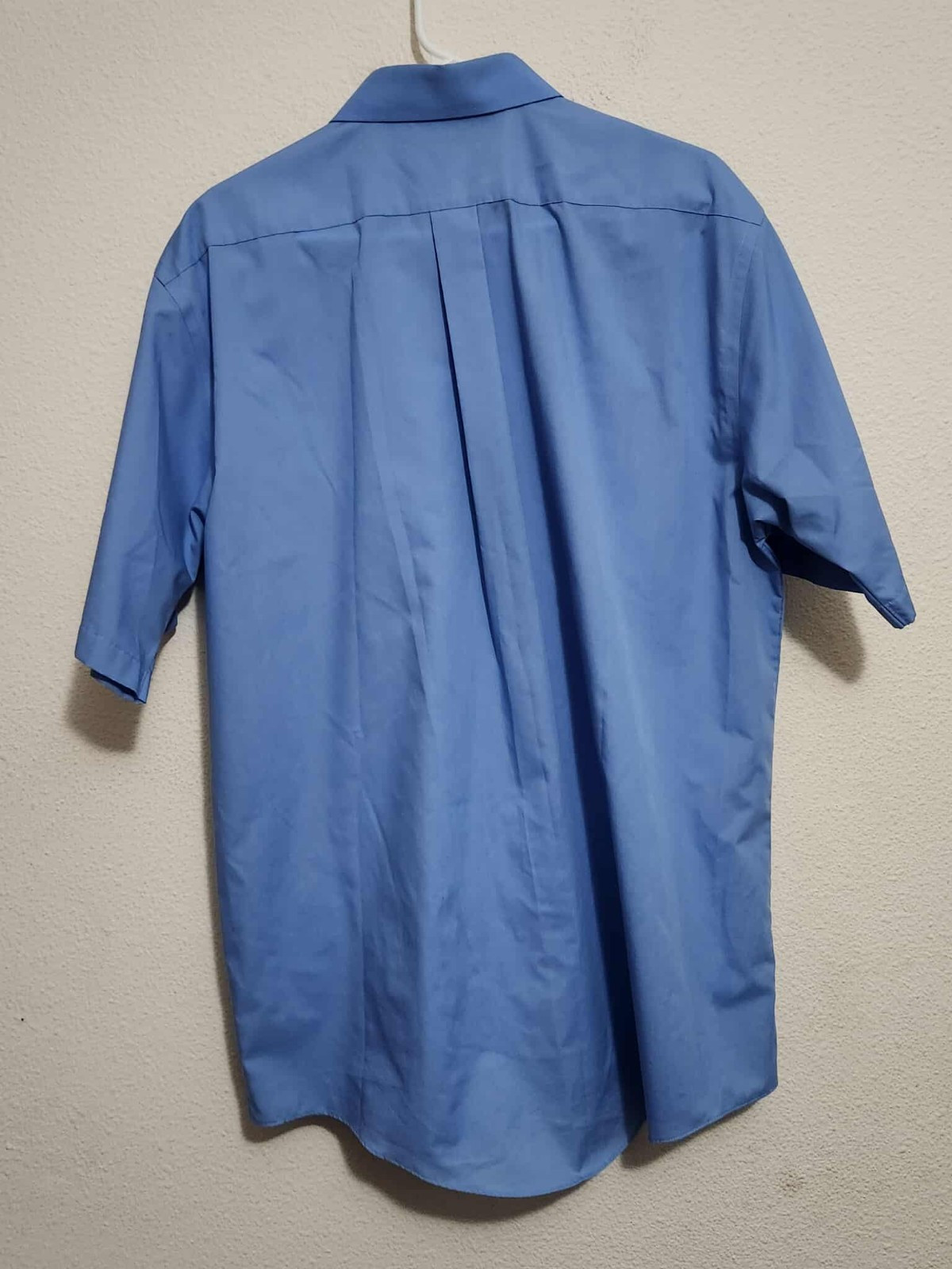 как выглядит Stafford Wrinkle Free Mens Sz 17 Button Up Blue Short-Sleeve Collared Shirt фото