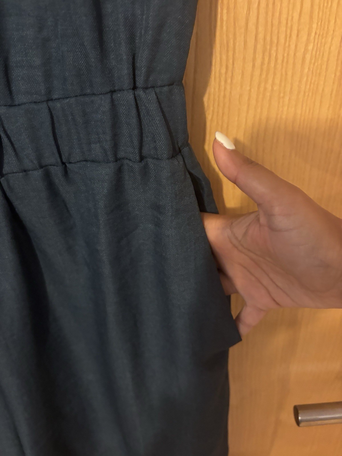 как выглядит Navy Blue And Gold Button Wide Leg Jumpsuit Size L фото