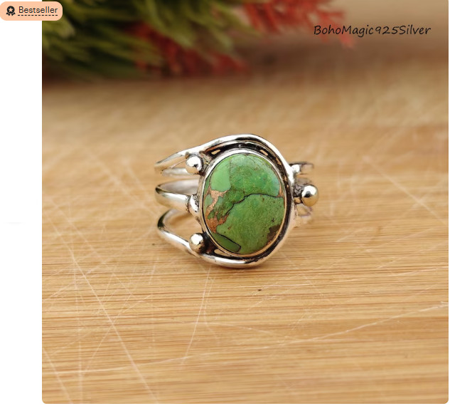 Green Turquoise Ring 925 Sterling Silver Handmade Birthday Ring All Size R336