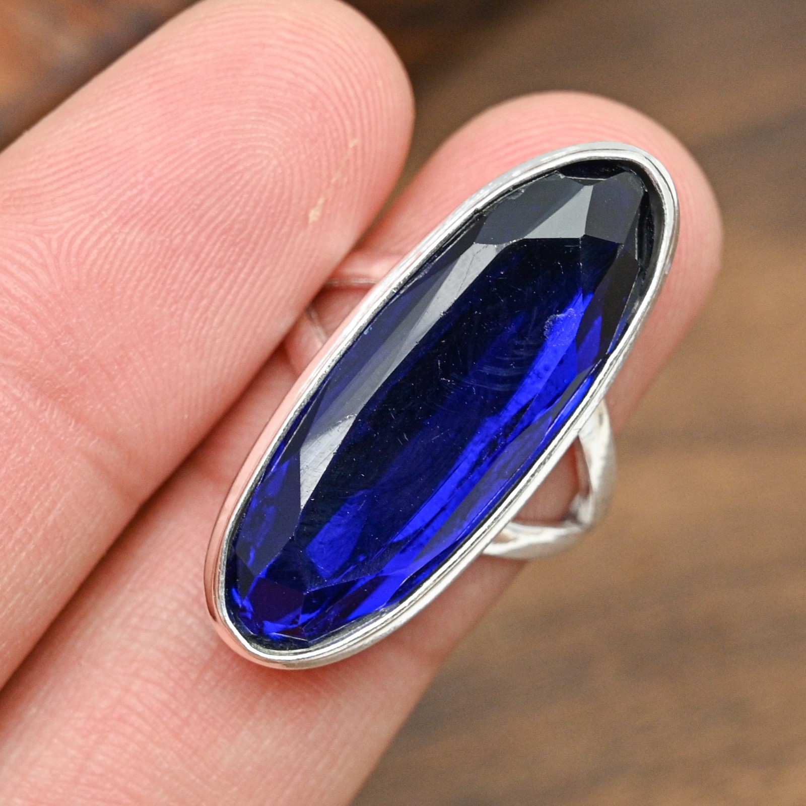 как выглядит Blue Sapphire Lab-Created Gemstone Handmade 925 Sterling Silver Jewelry Ring фото