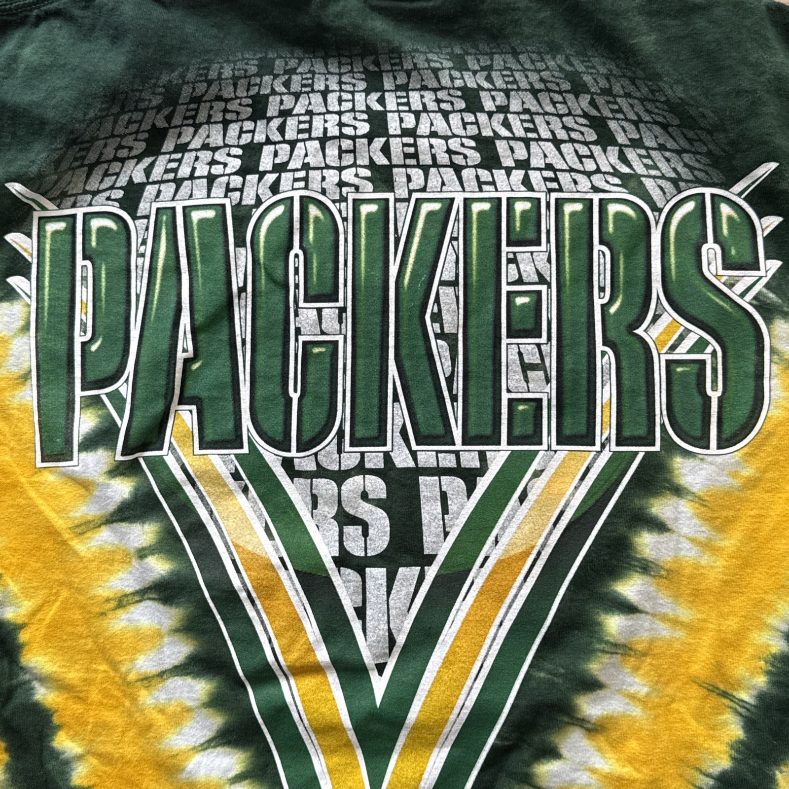 Vintage Y2K Green Bay Packers Tie Dye T-Shirt Men's Sz M Double Sided