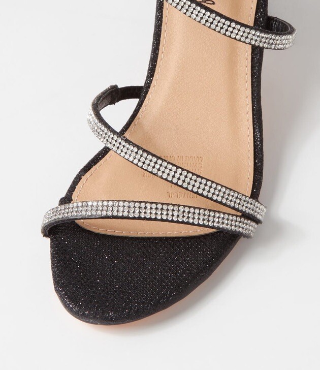 как выглядит I Love Billy Jentel Black Glitter Sandals Size 40 Block Heel Strappy Rhinestone фото