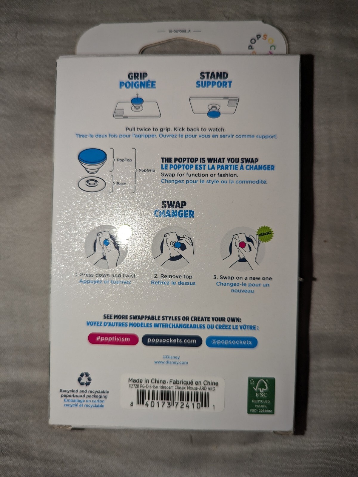 NEW Popsockets POPGRIP DISNEY Classic Mickey Mouse Black Grip Stand