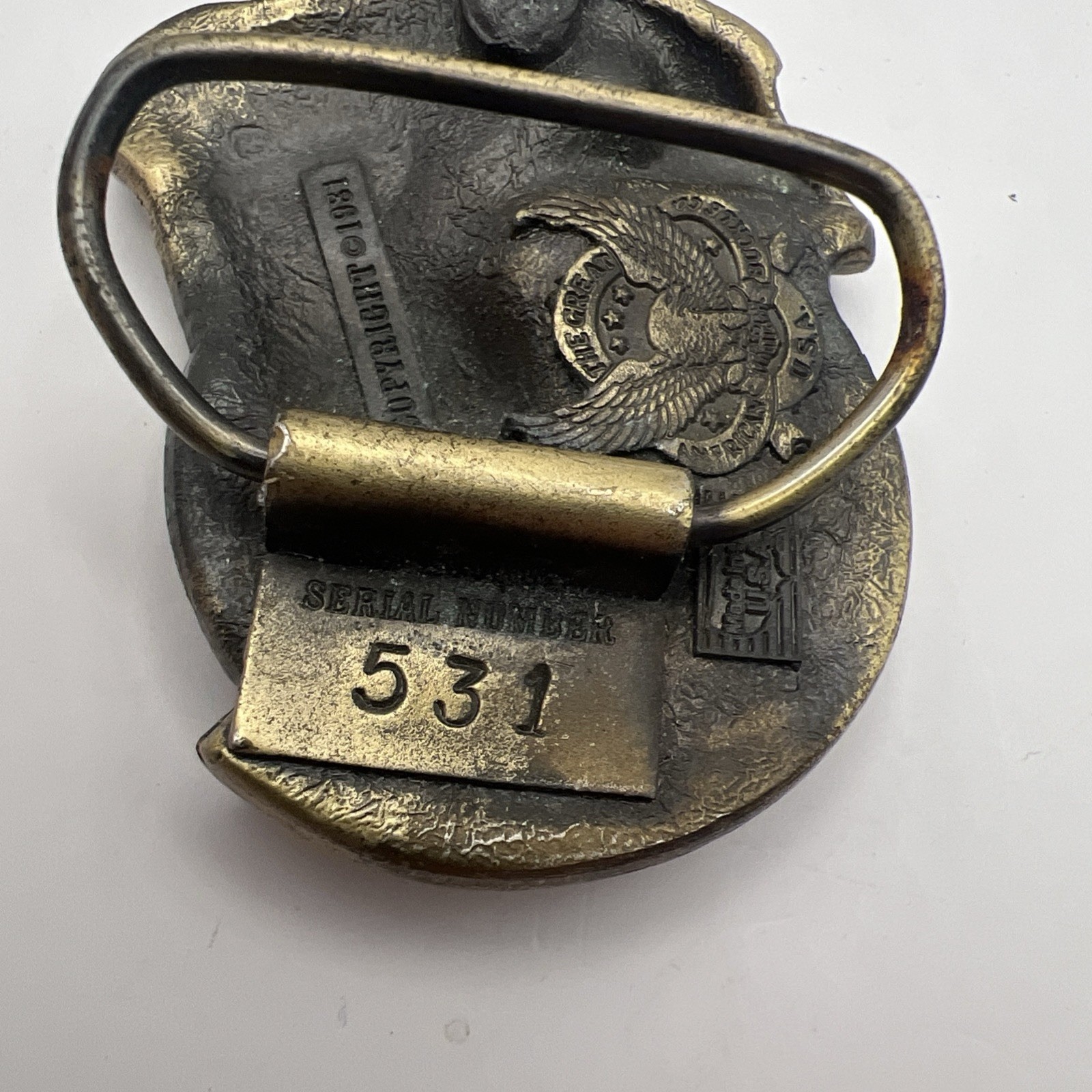 VTG 1981 LARGE MOUTH BASS FISHING BRASSTONE BELT BUCKLE SERIAL 531 USA MADE