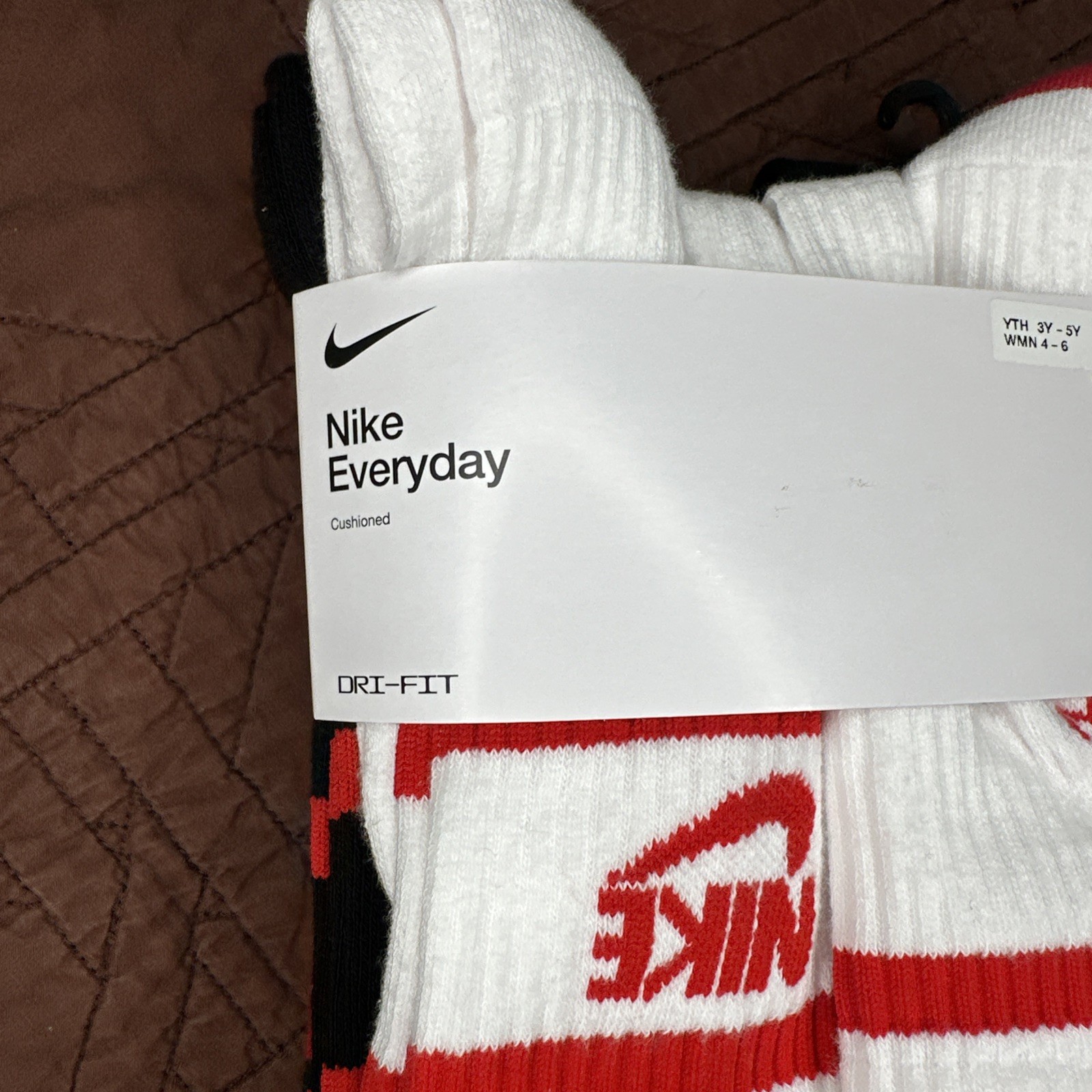 Nike Everyday Dri-Fit Cushioned Crew Socks Size Youth 3-5 Black/Red/White NWT