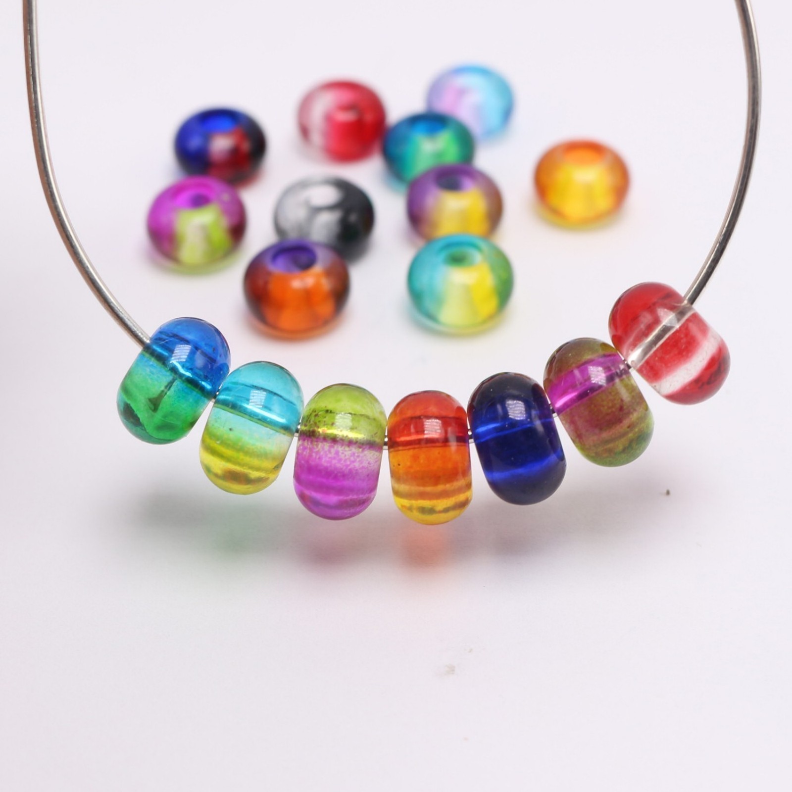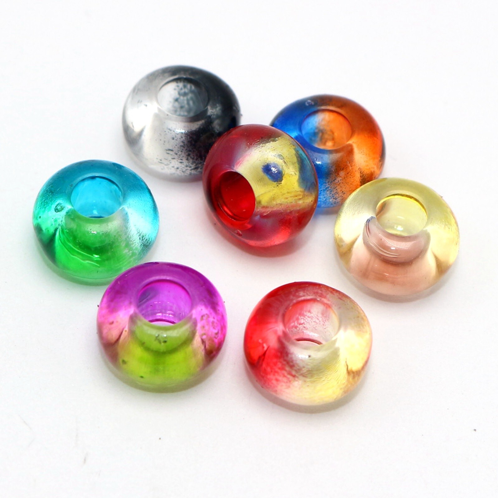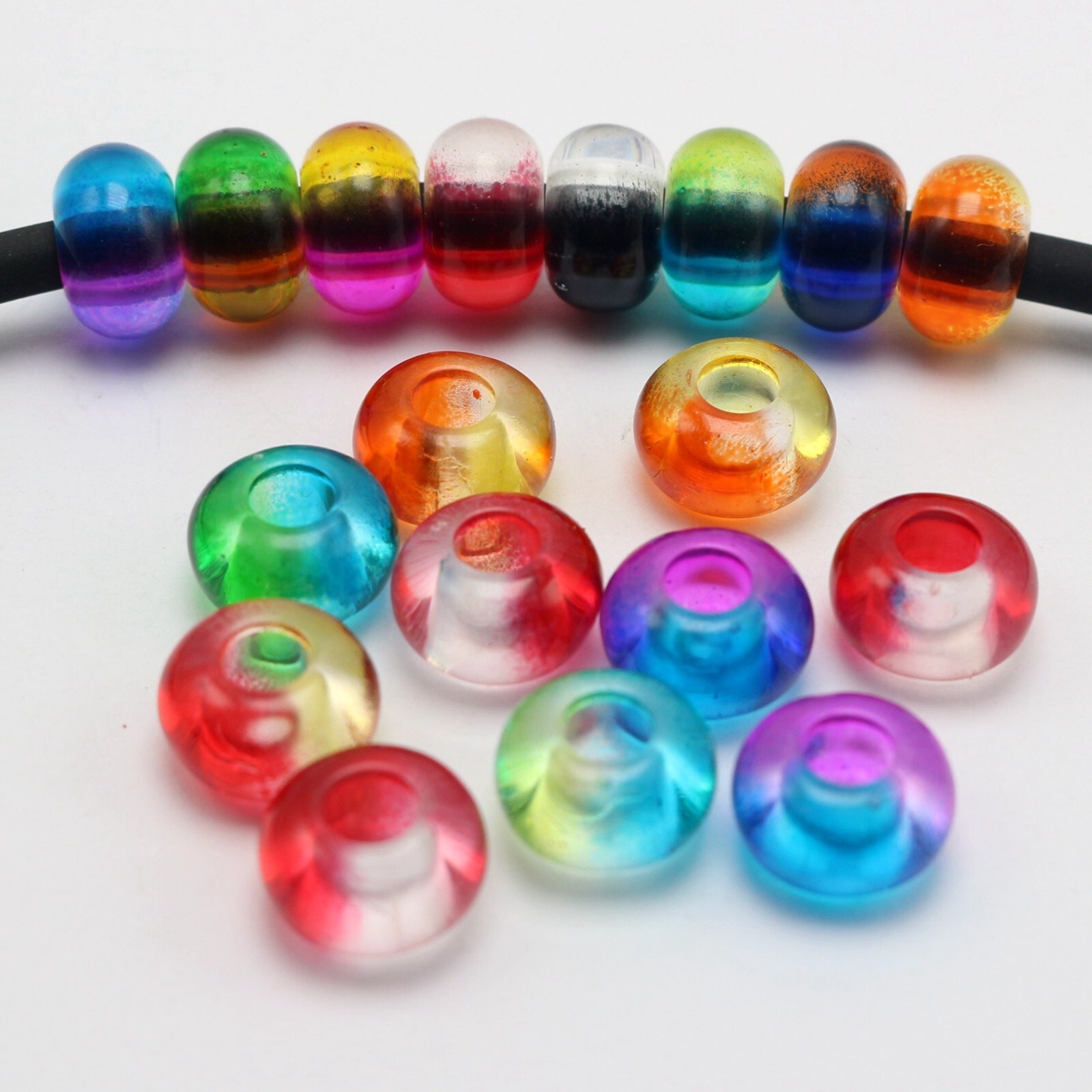 как выглядит 50 Mixed Two Colored Acrylic Rondelle Spacer Beads 14mm With Big Hole 5mm фото