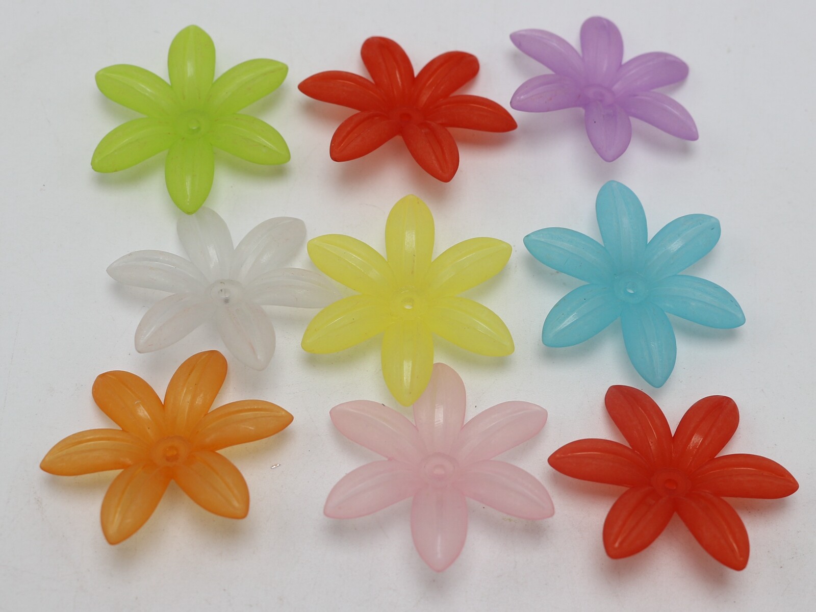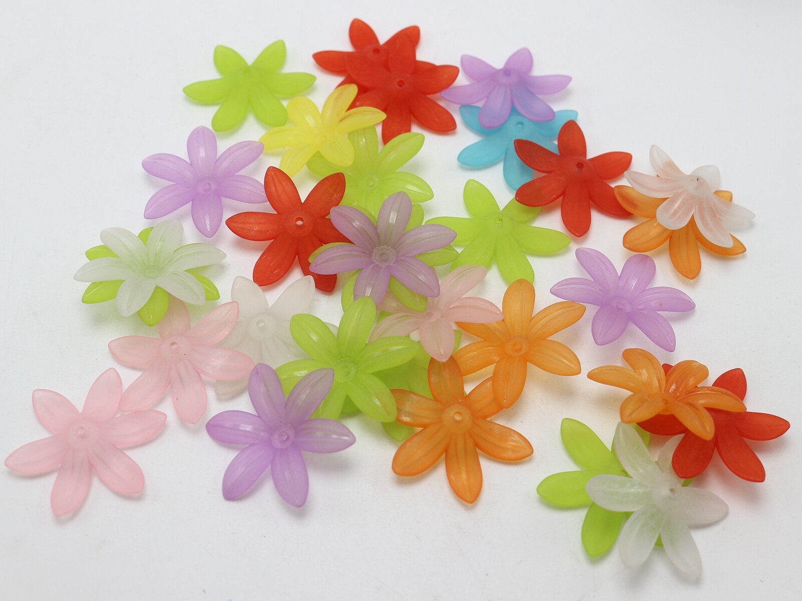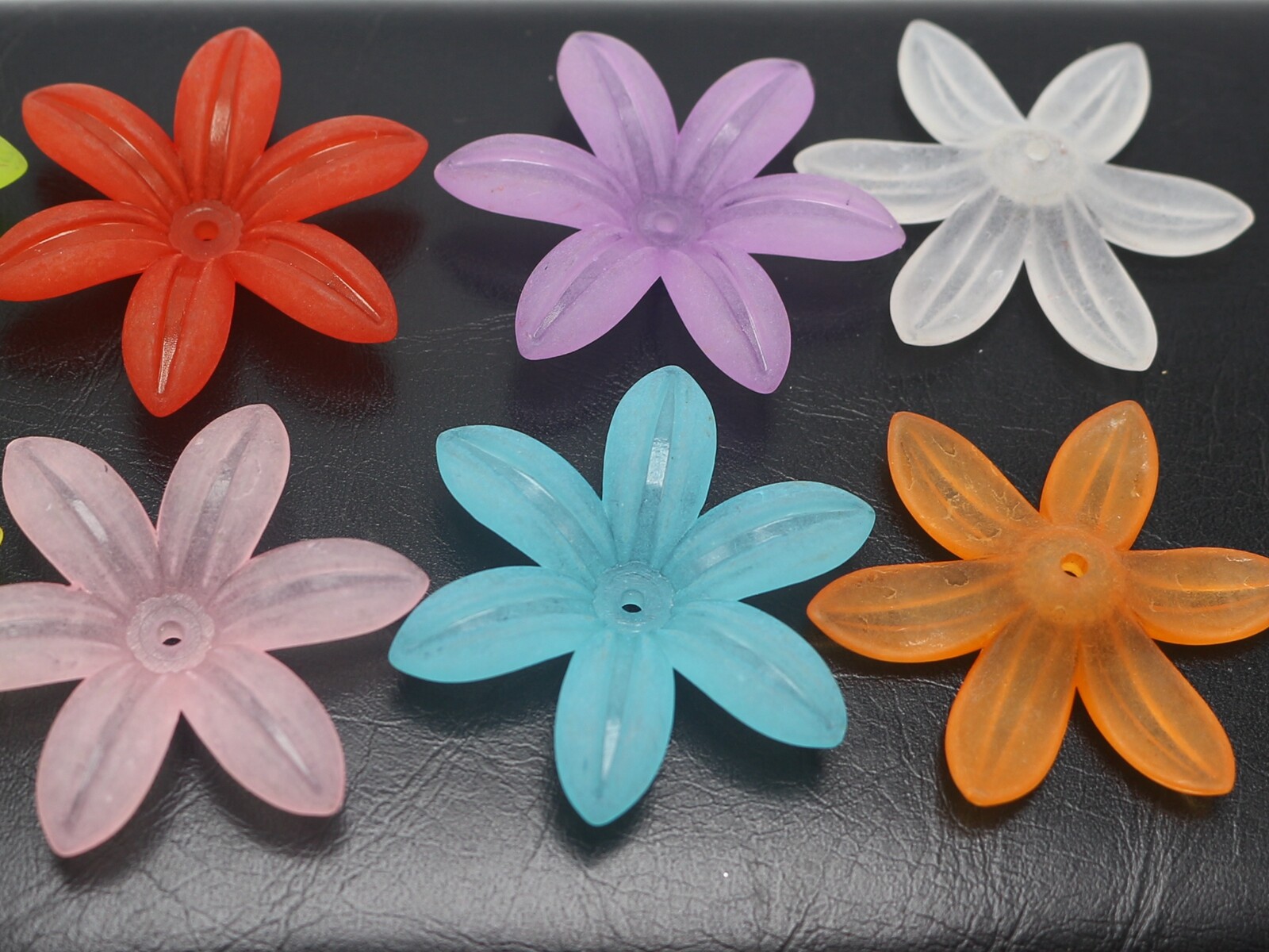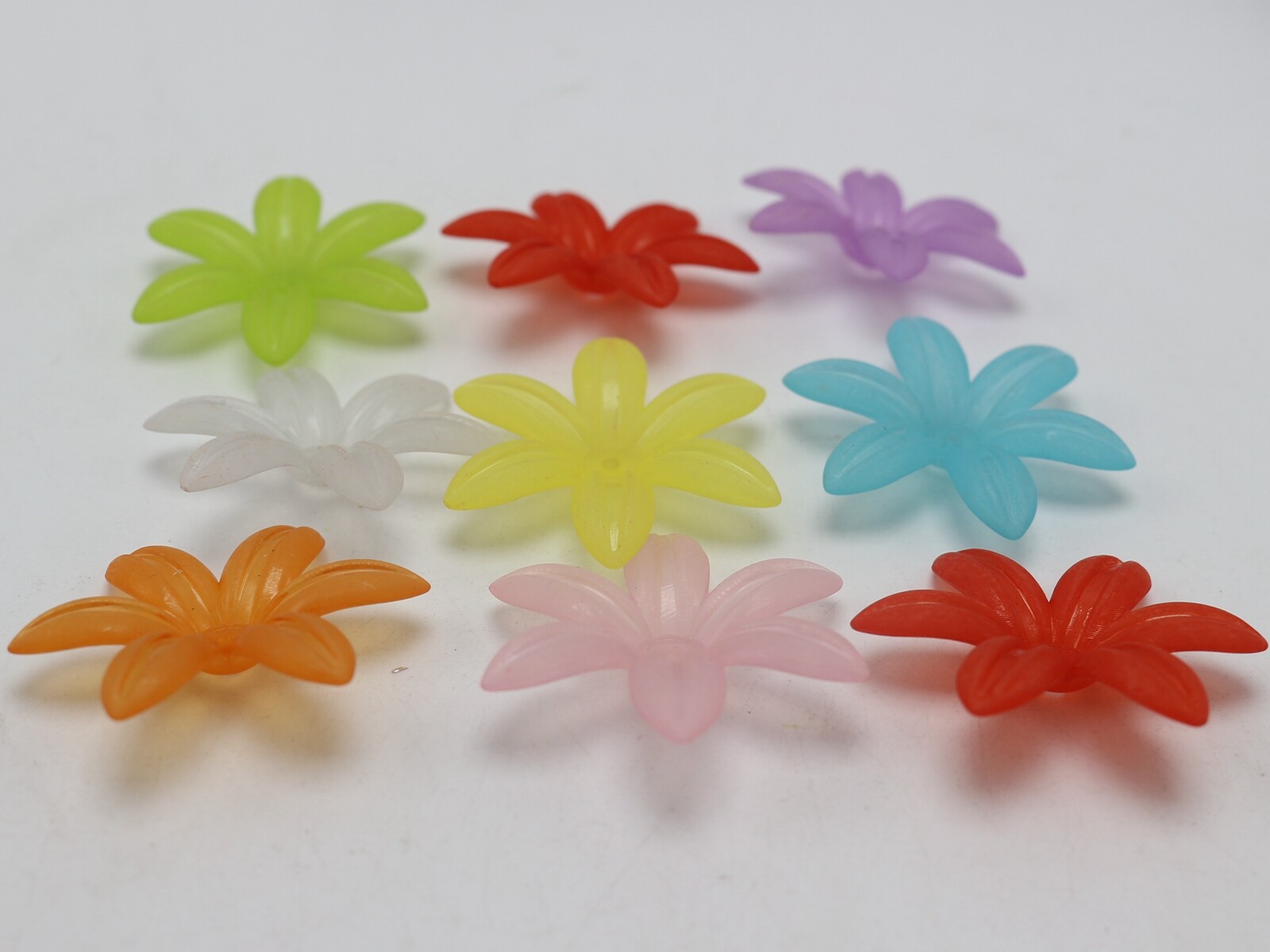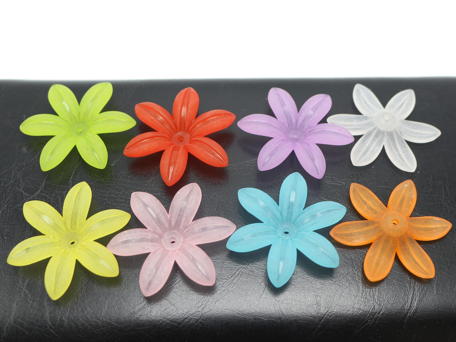 50 Mixed Color Frosted Acrylic 6-Petal Daisy Flower Bead Cap 34mm Jewelry Flower