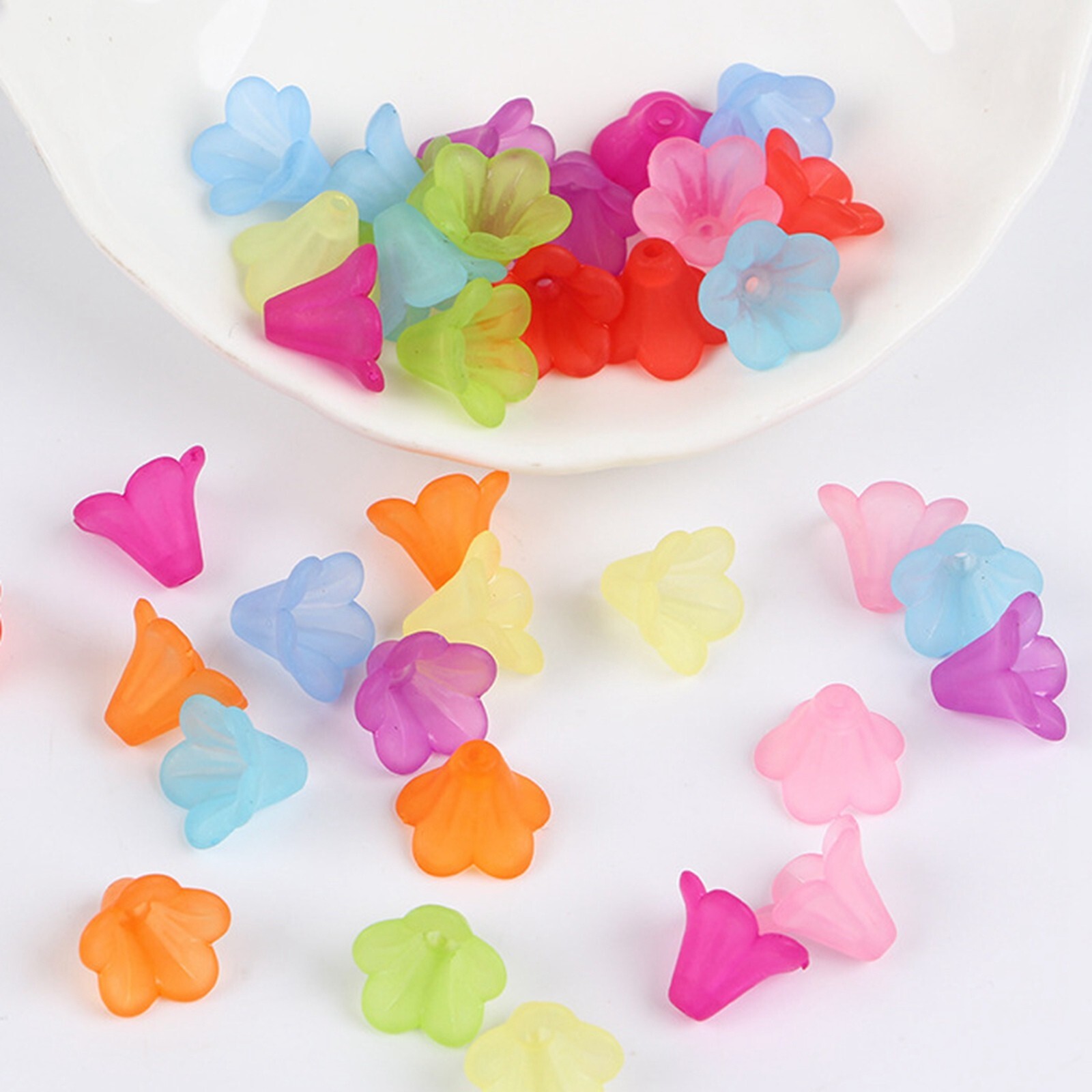 100 Mixed Color Frosted Acrylic Trumpet Flower Bead Cap 14mm Bracelet Beads