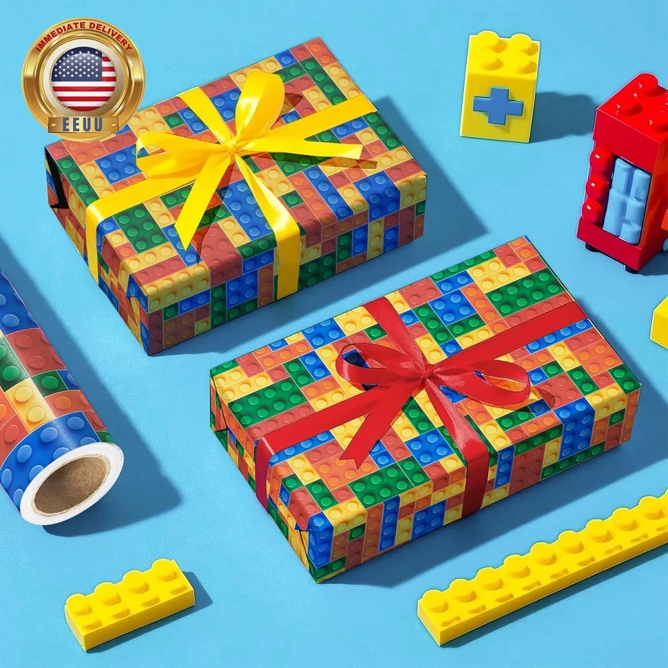 Bricks Wrapping Paper Roll - Mini Roll - 17 Inch X 16.5 Feet - Building Blocks W