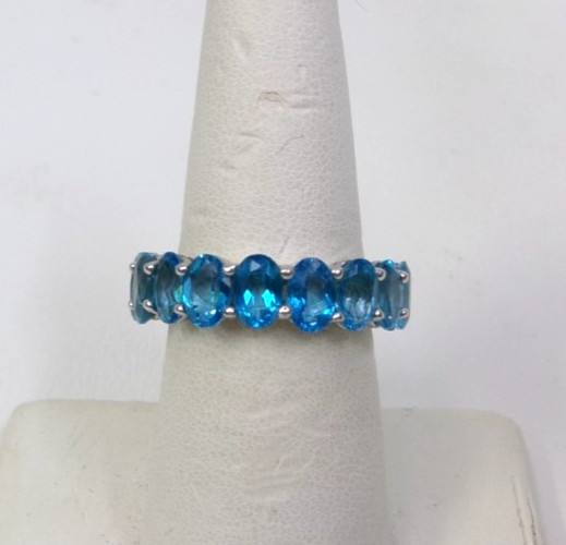 Sterling Silver Oval Blue Topaz Eternity Band Ring Size 7