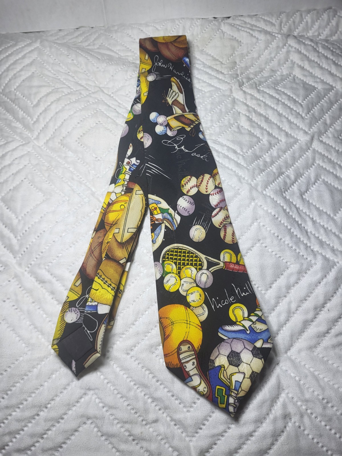 Vintage Nicole Miller Sports Print Tie 100 Silk 4 W Excellent Condition 1994