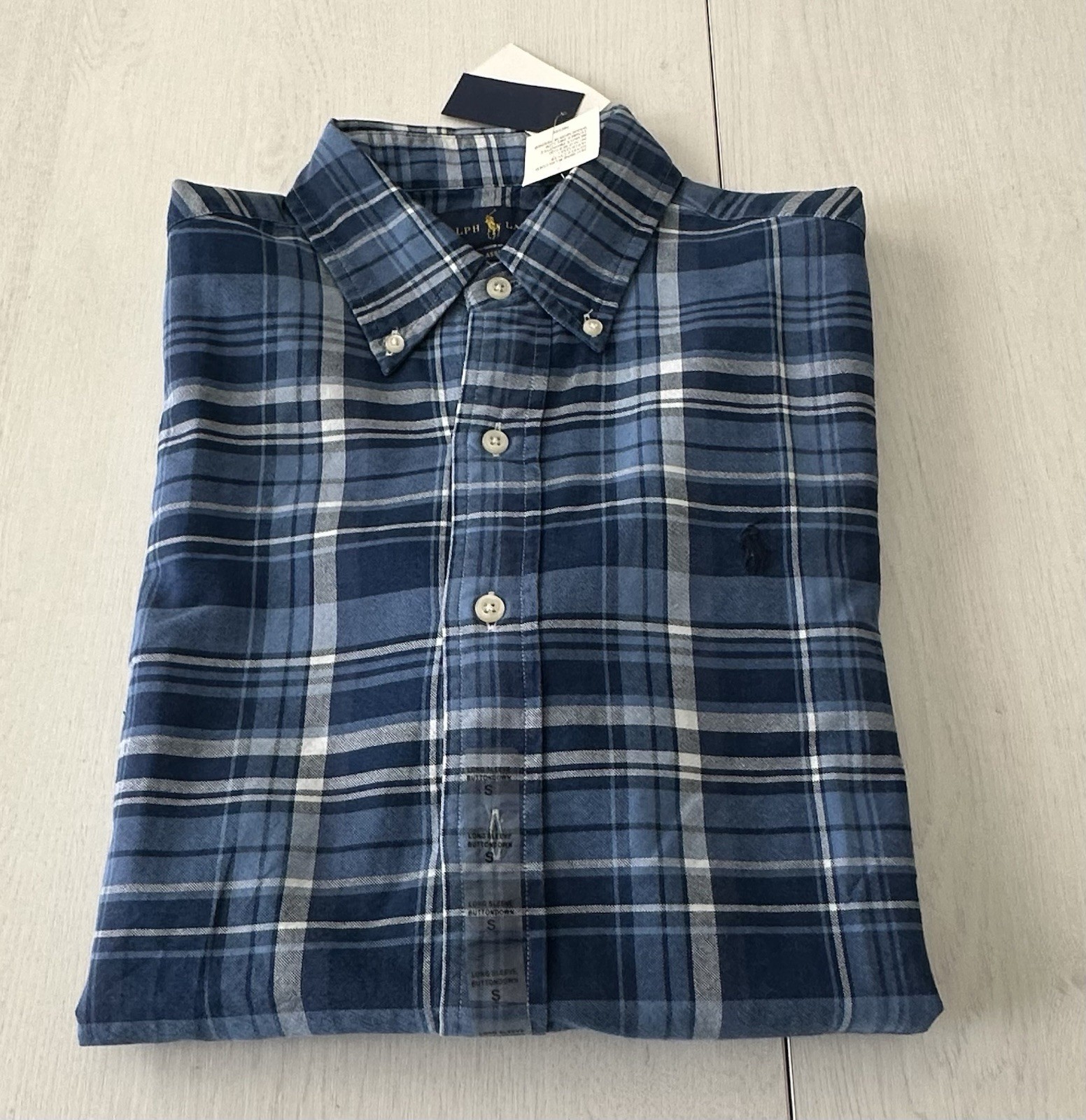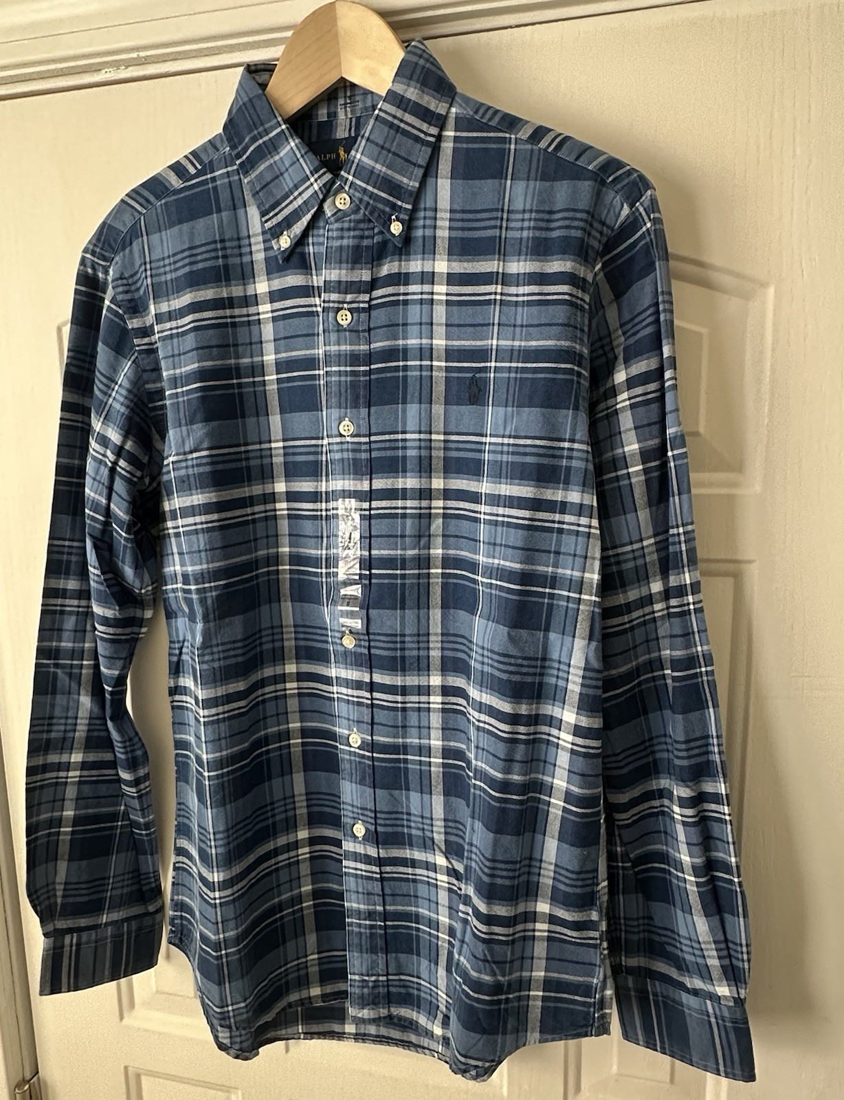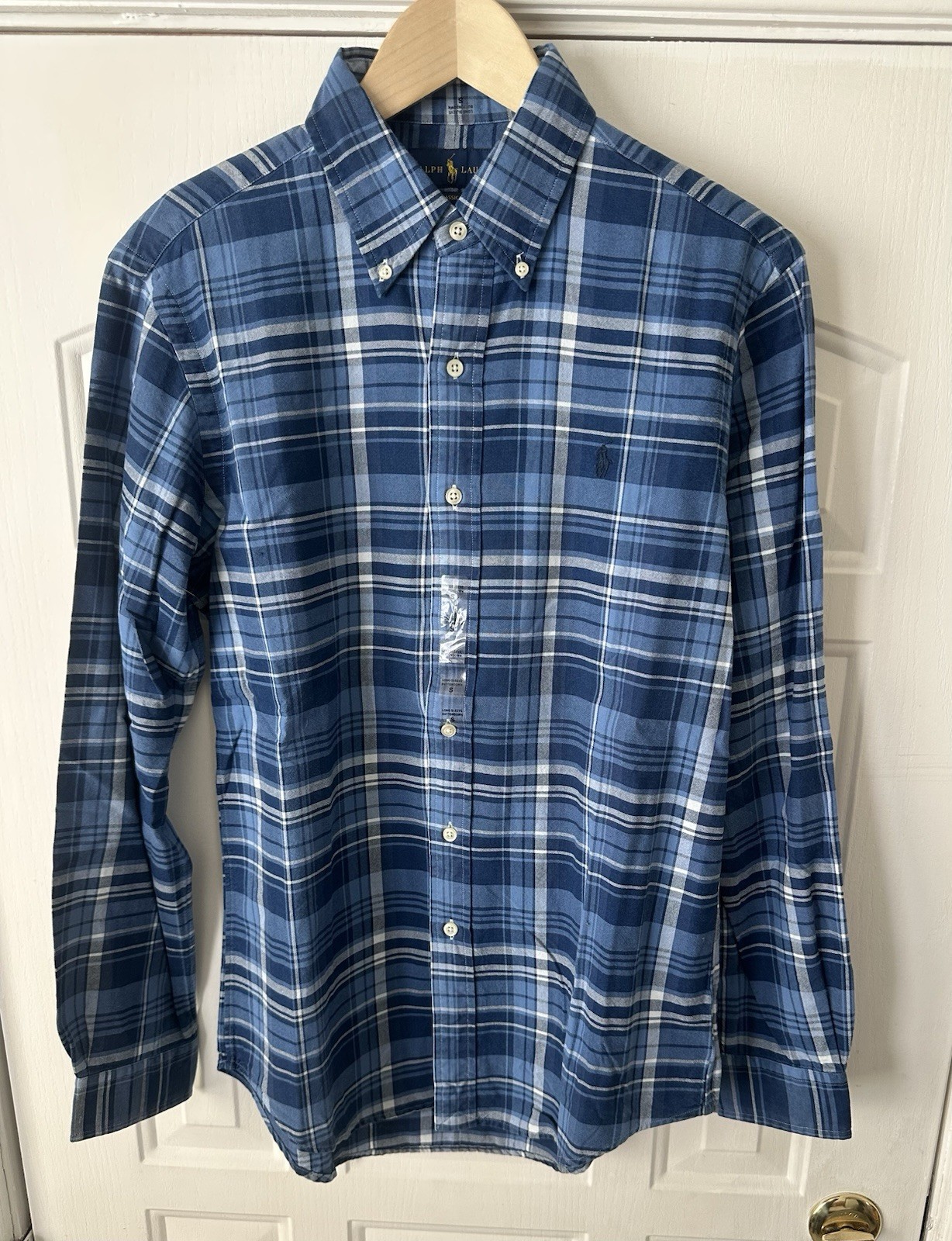 NWT Men s Polo Ralph Lauren Indigo Plaid Classic Fit Oxford Shirt Size S