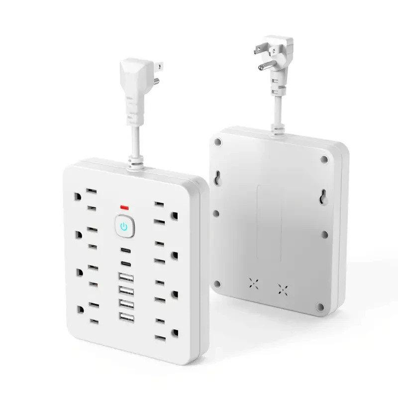 White 14-in-1 Power Strip Surge Protector w/ 8 AC Outlets, 4 USB 2 USB-C Ports