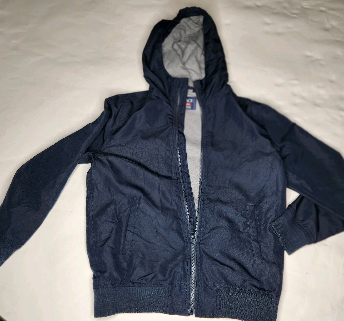 как выглядит The Children s Place Kids Windbreaker Hooded Jacket in Dark Blue Sz L/G 10-12 фото