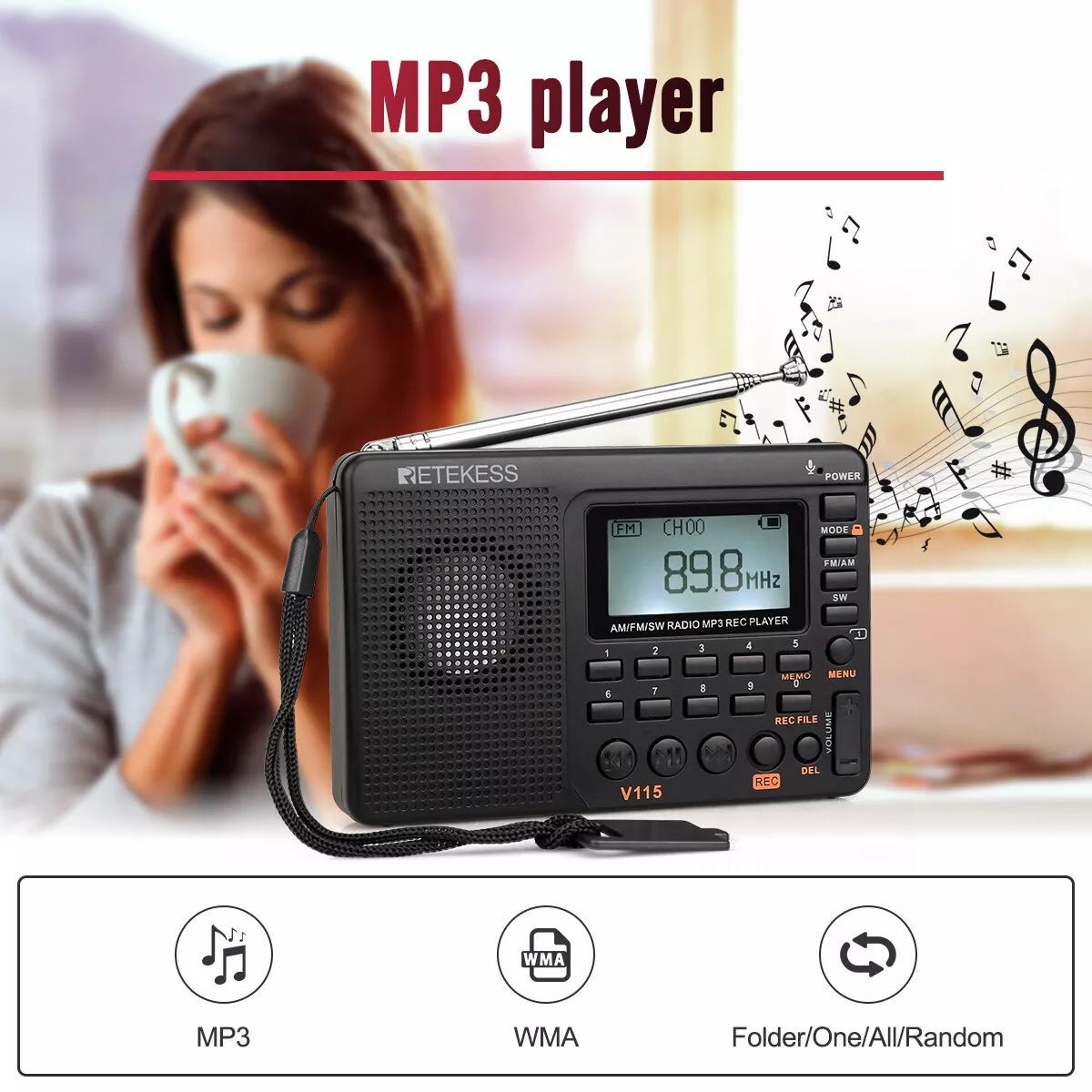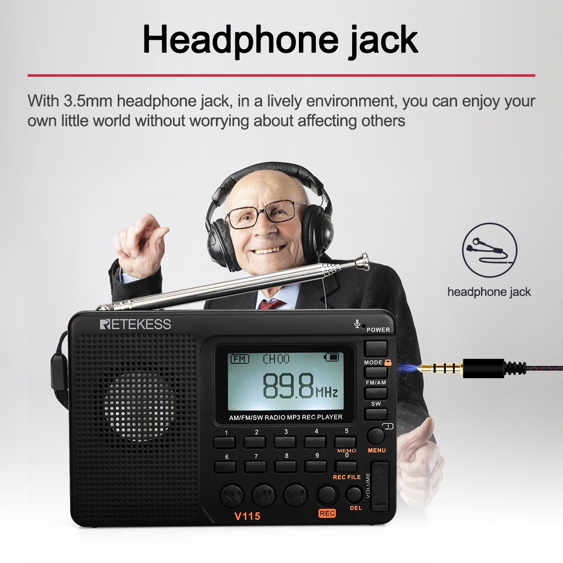 V115P Portable Radio,AM FM SW WB Radio,Digital Stereo Bluetooth Radio For Gift