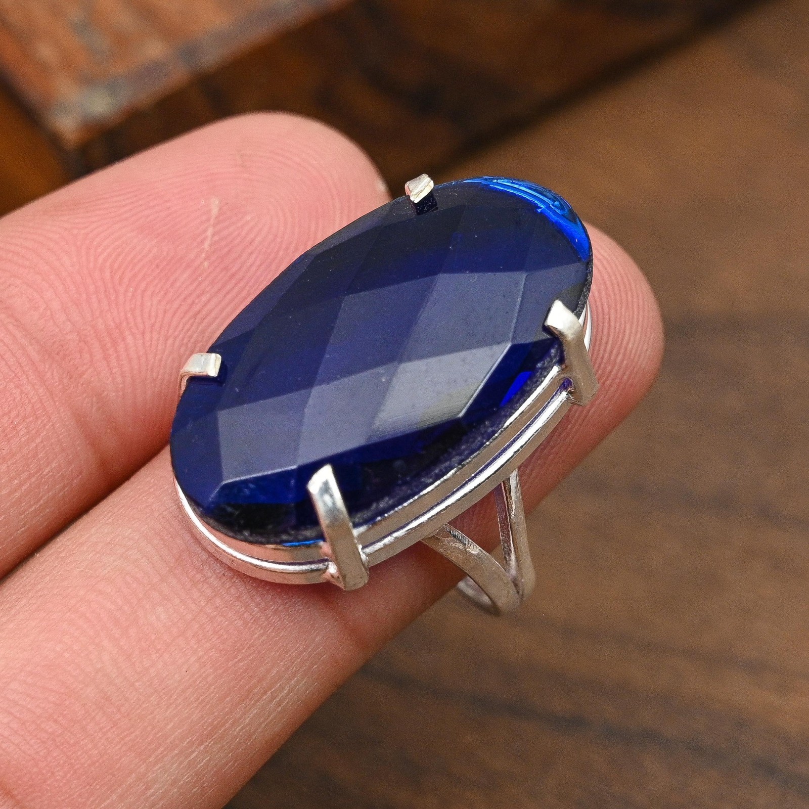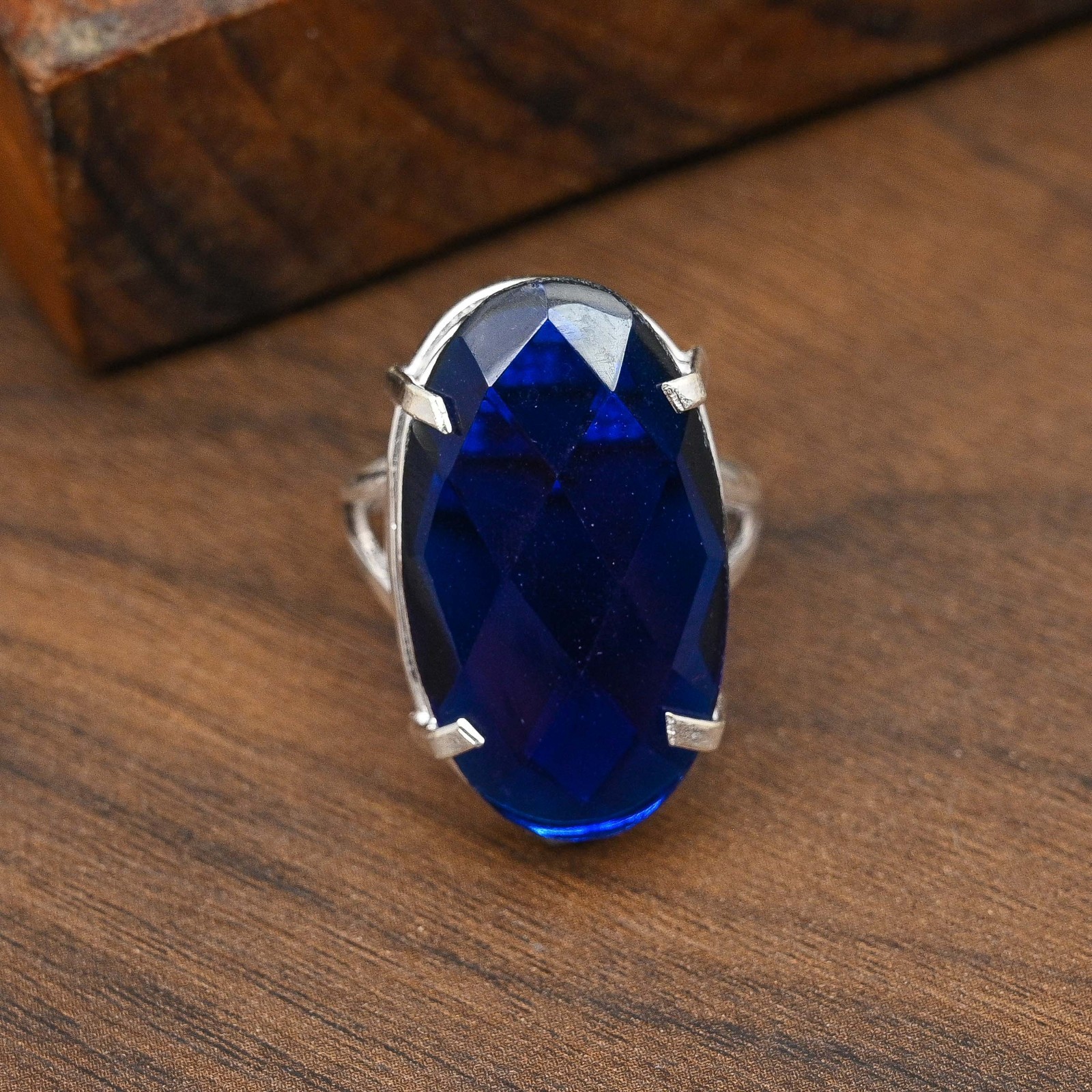 Blue Sapphire Lab-Created Gemstone Handmade 925 Sterling Silver Jewelry Ring