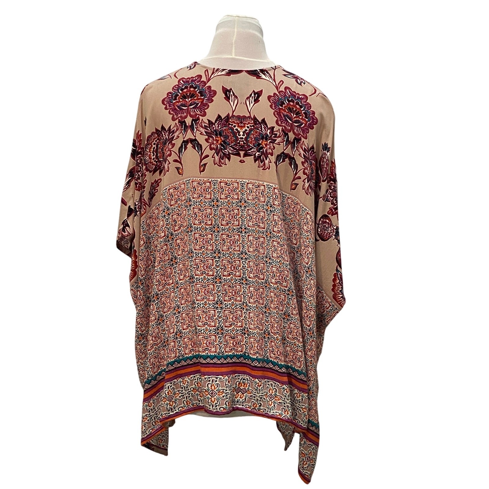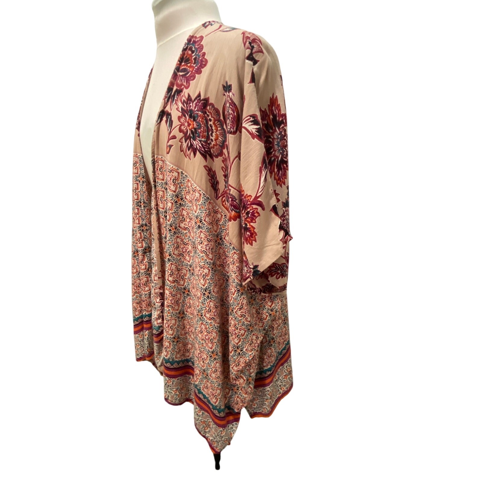 как выглядит ANGIE Mauve Short Sleeve Kimono Mixed Print MEDIUM Flowy Boho Bohemian Hippie фото