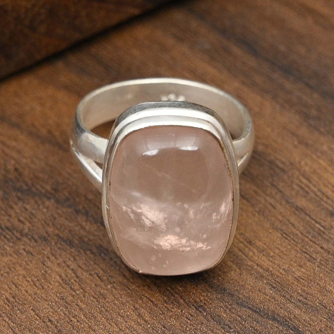 Rose Quartz Gemstone Handmade 925 Sterling Silver Adjustable Jewelry Women Ring