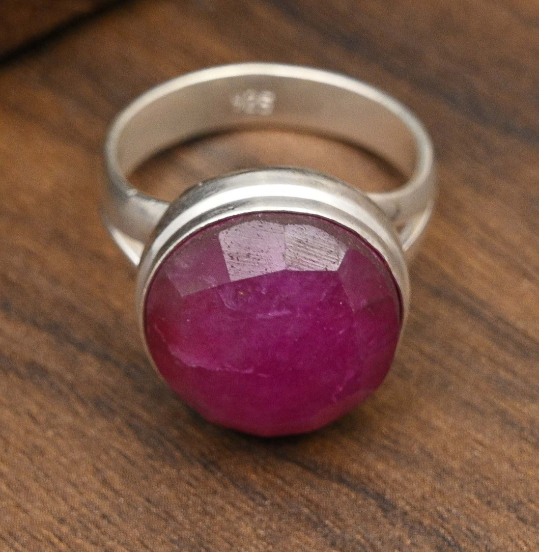 Faceted Ruby Lab-Created Gemstone Handmade 925 Sterling Silver Jewelry Ring