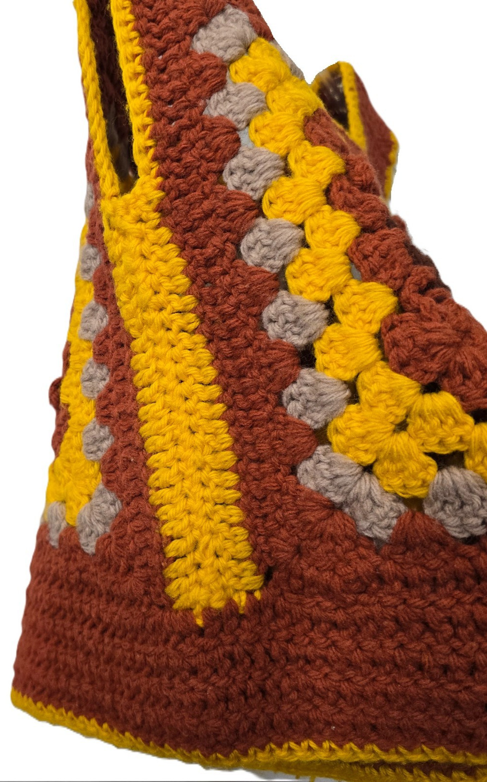 Vintage 70s Knit Top Vest 10 Granny Square Brown Yellow Hippie Halloween Costume