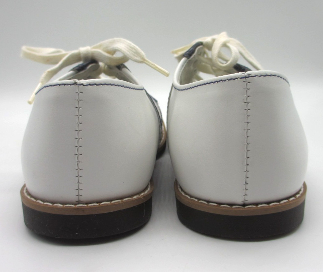 как выглядит Vintage Stride Rite Classic Leather Saddle Shoes Navy and White Kids Size 8 фото