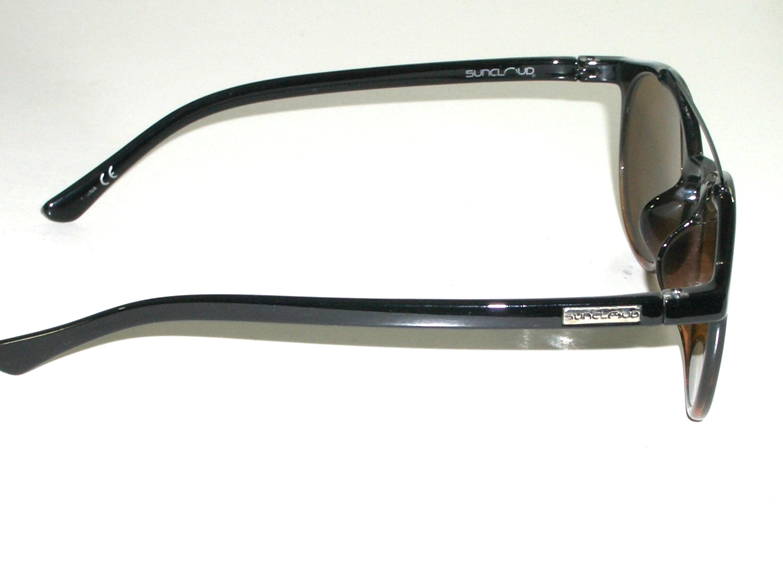 SUNCLOUD BELMONT POLARIZED SHINY BLACK BROWN LENS ROUND TRADITIONAL SUNGLASSES