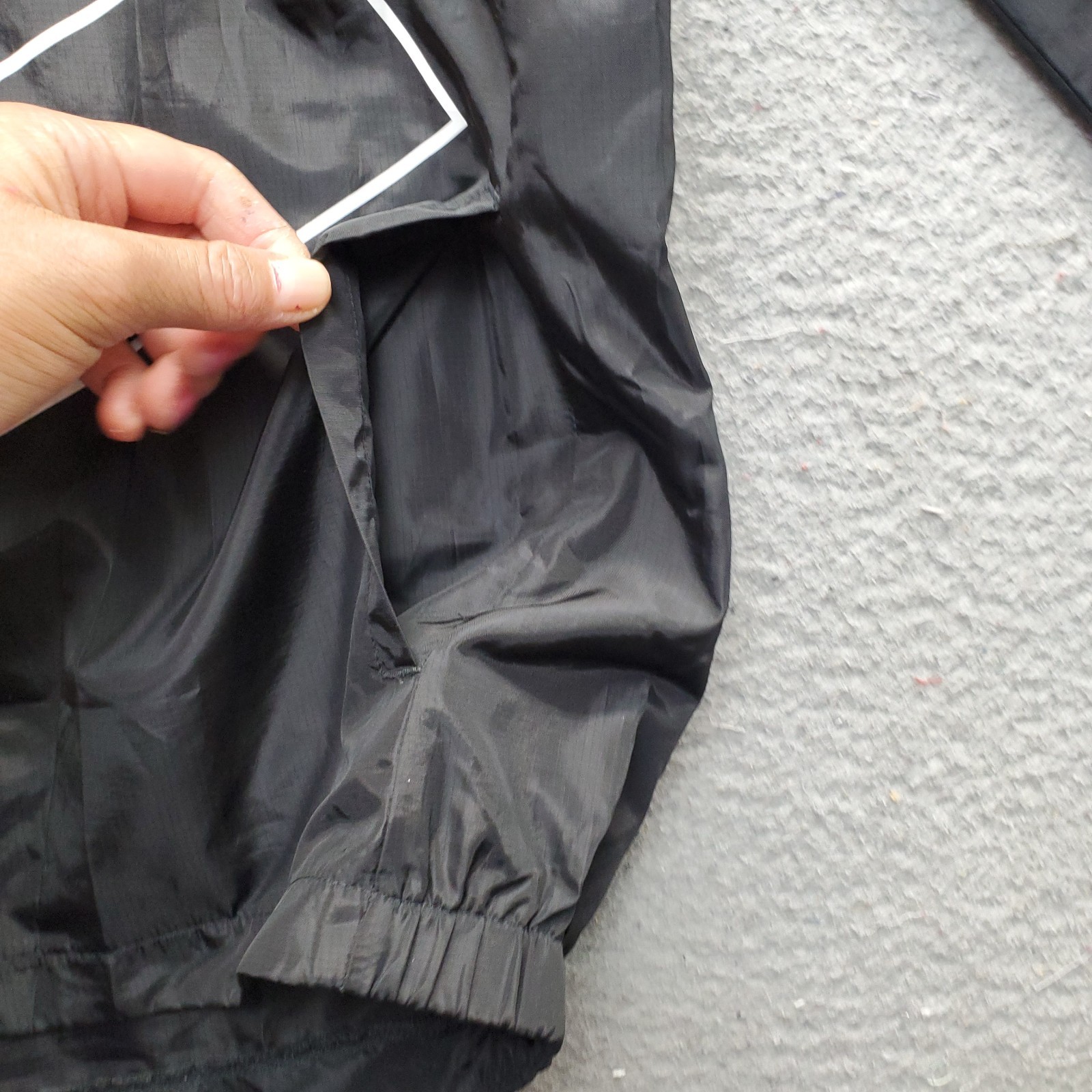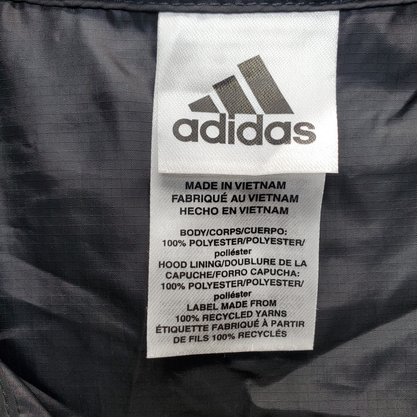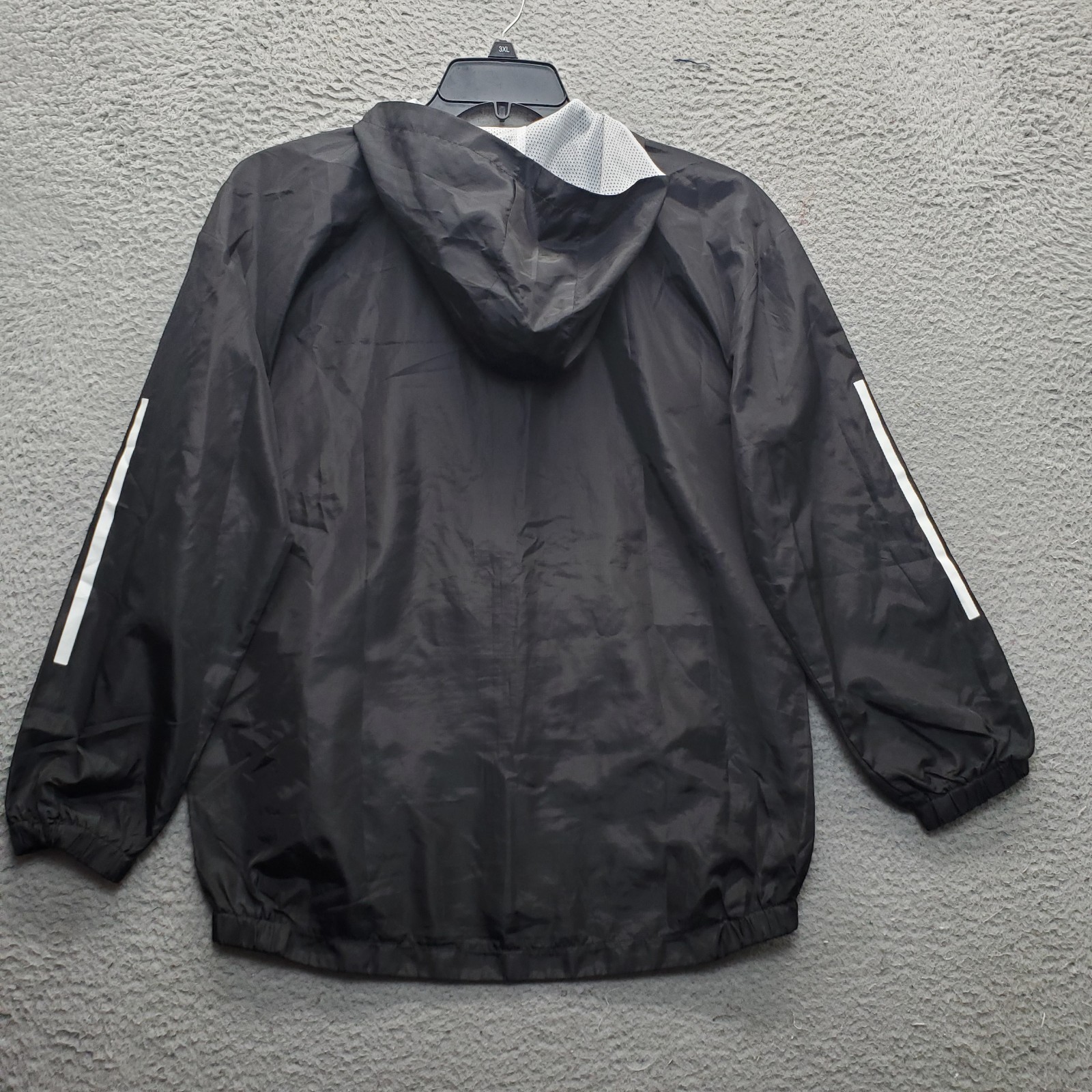 как выглядит Adidas Windbreaker Jacket Youth Black Stripes Sleeve Hooded Mesh Lined Full Zip фото