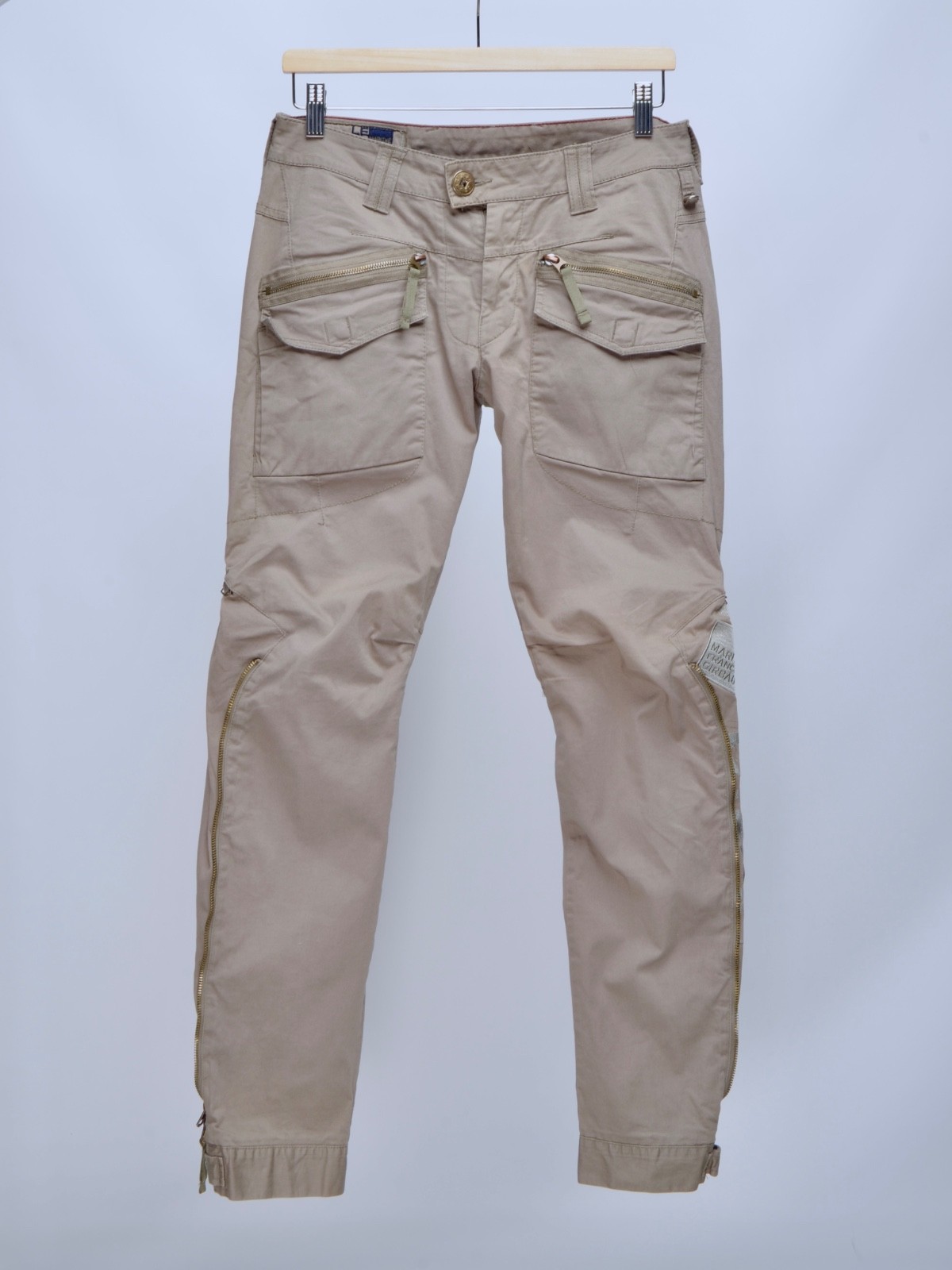 как выглядит Mens MARITHE FRANCOIS GIRBAUD Pockets Full Side Zipper Beige Cargo Pants Size 30 фото