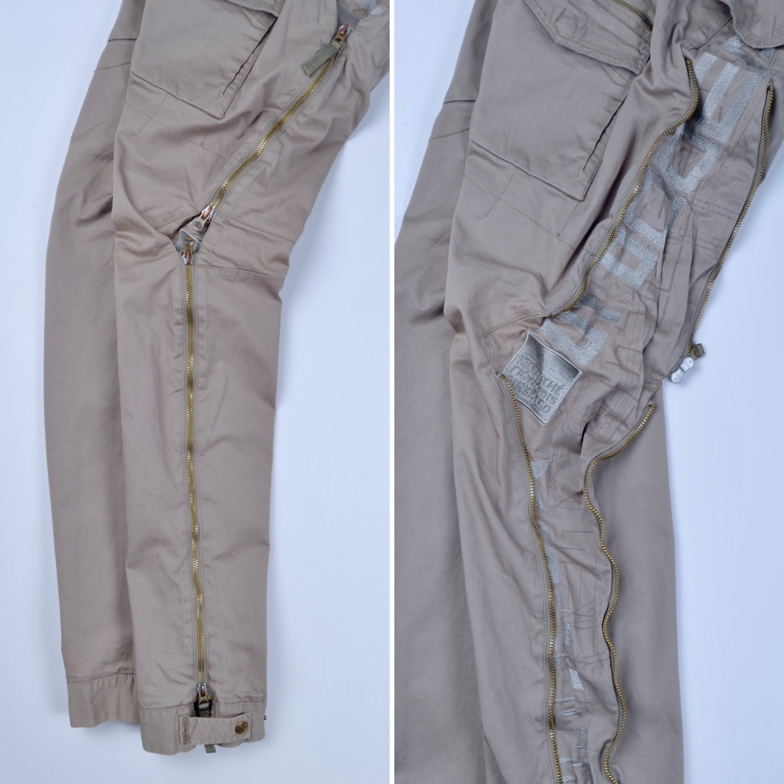 Mens MARITHE FRANCOIS GIRBAUD Pockets Full Side Zipper Beige Cargo Pants Size 30