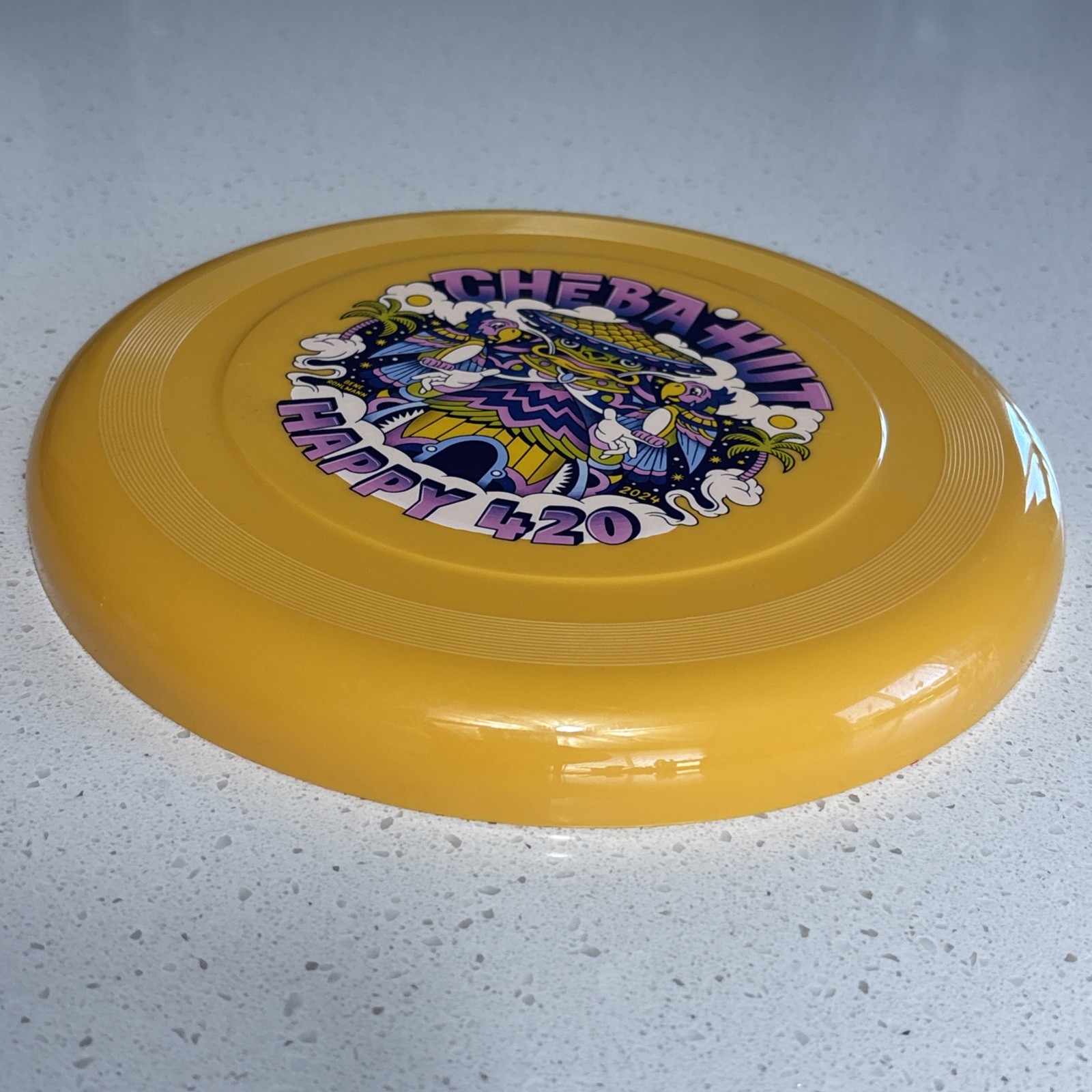 как выглядит Yellow 420 Cheba Hut Frisbee High Flying Disc 420 Marijuana Promo 2024 Parrots фото