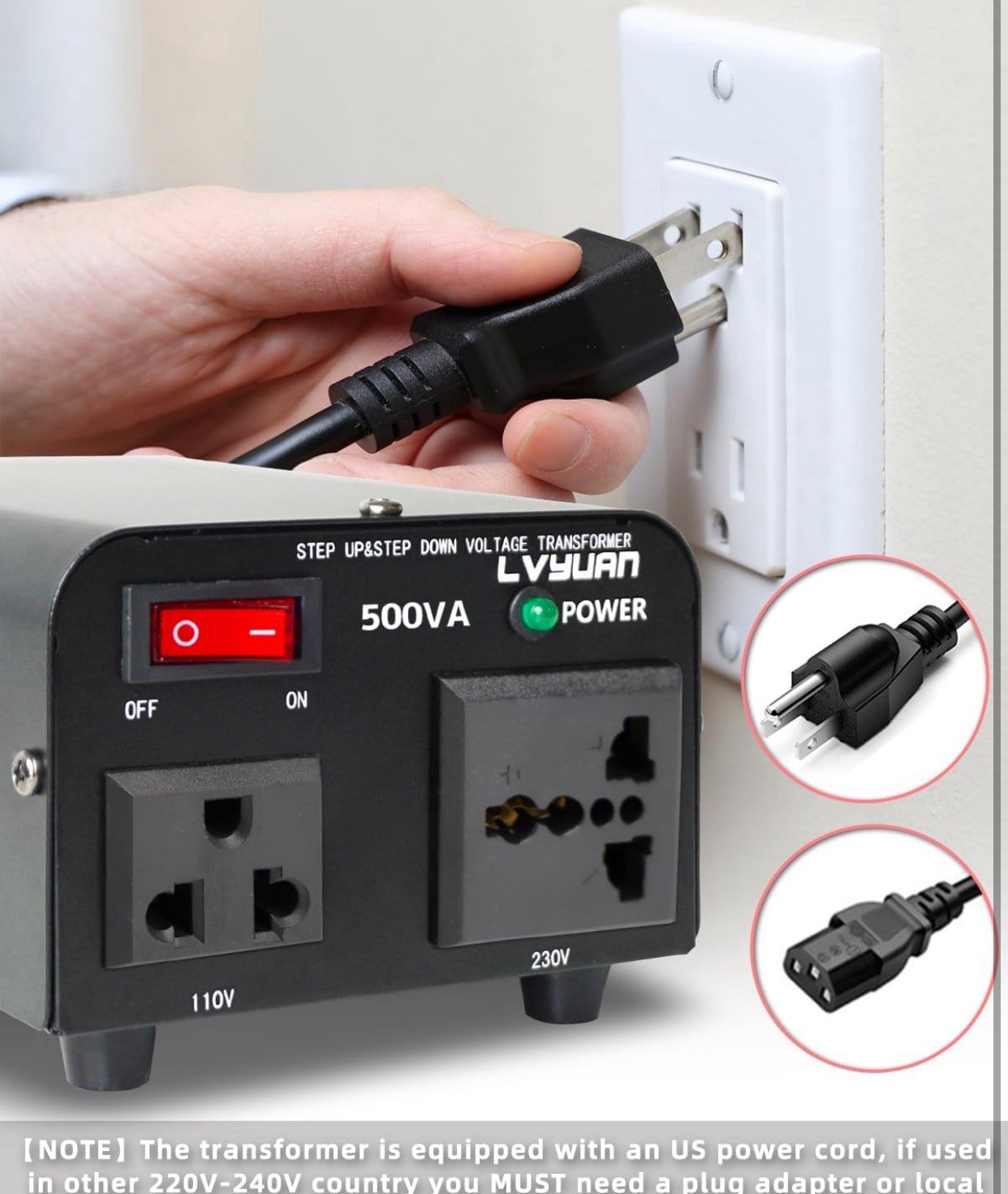 500W Voltage Transformer Converter Step Up Down 110V 220V US EU Trip Abroad