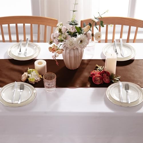 MILVOWOC Pack Satin Table Runners, 12 x 108 Inch Bright Satin 5 Chocolate Brown
