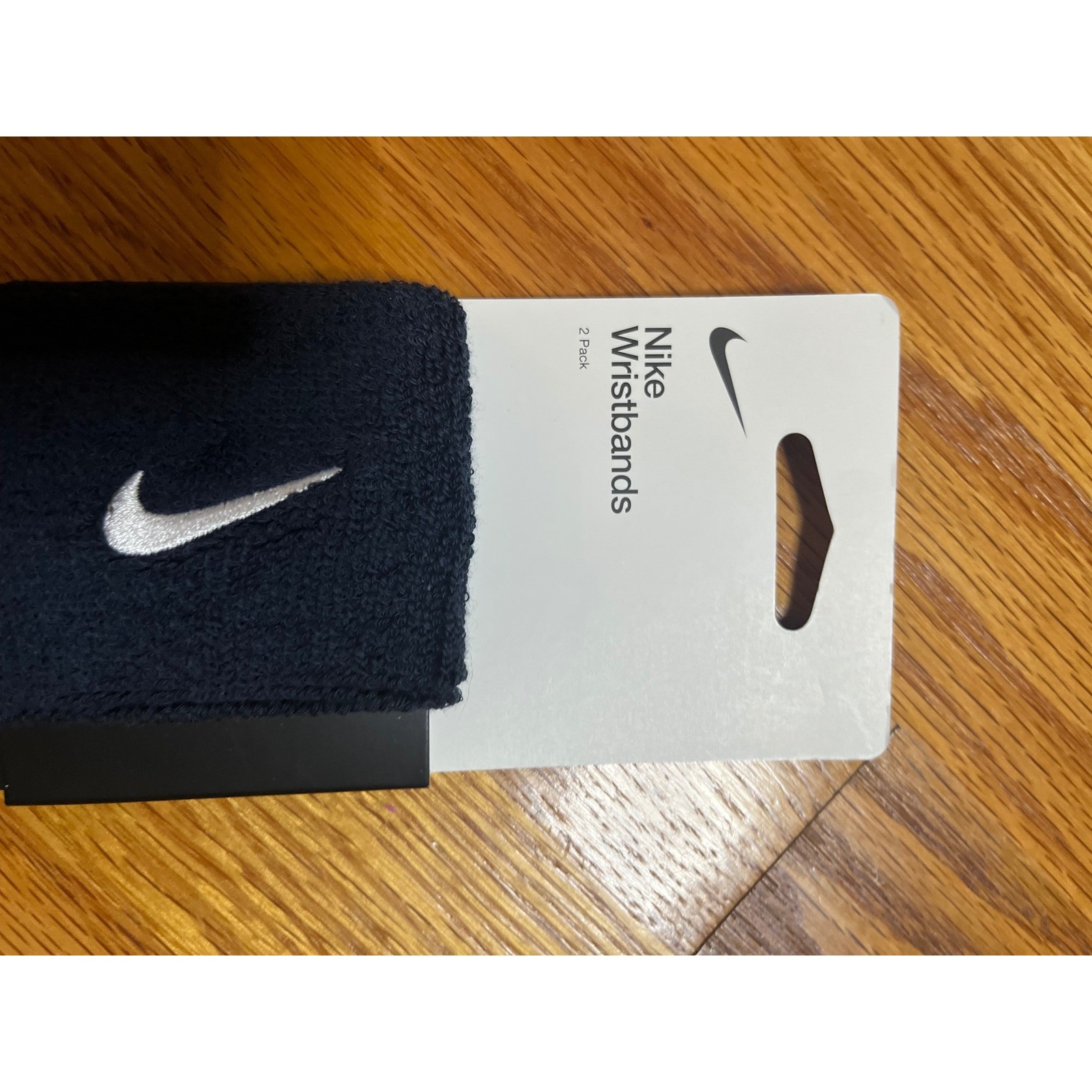 как выглядит Nike Wristbands 2 Pack Navy White Swoosh Terry Cloth Athletic Gym фото