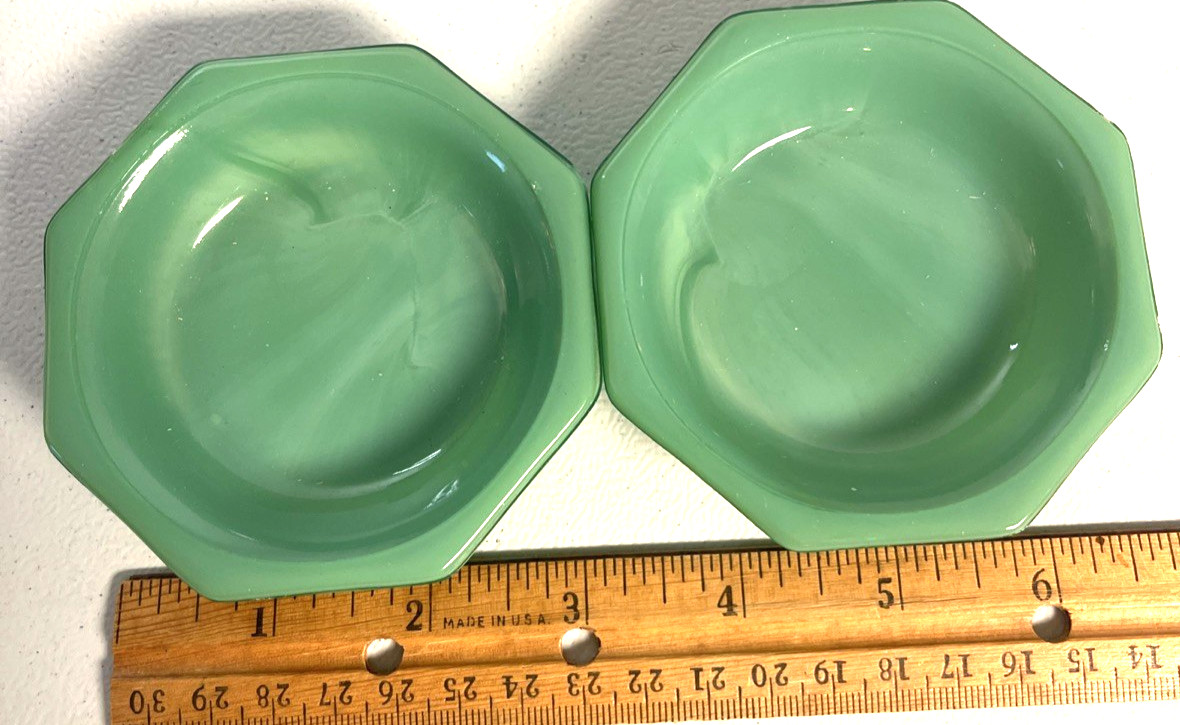 Akro Agate Tea Set Jadite Green Octagonal Bowl Dishes