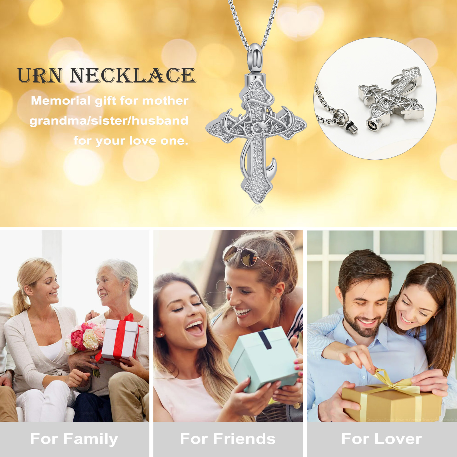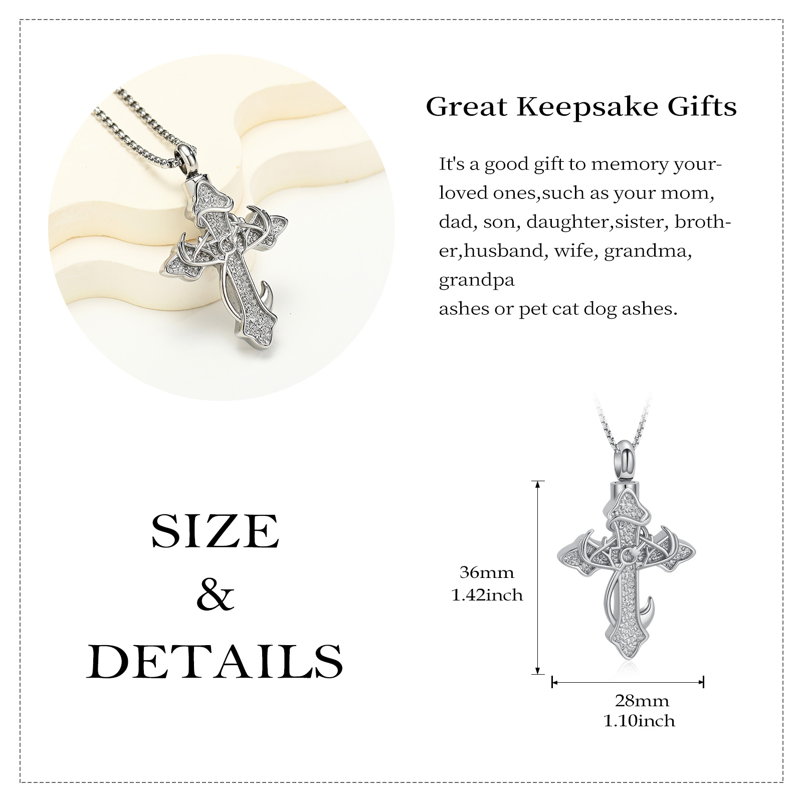 Cross Cremation Jewelry Urn Necklace for Ashes Human / Pet Memorial Urn Pendant