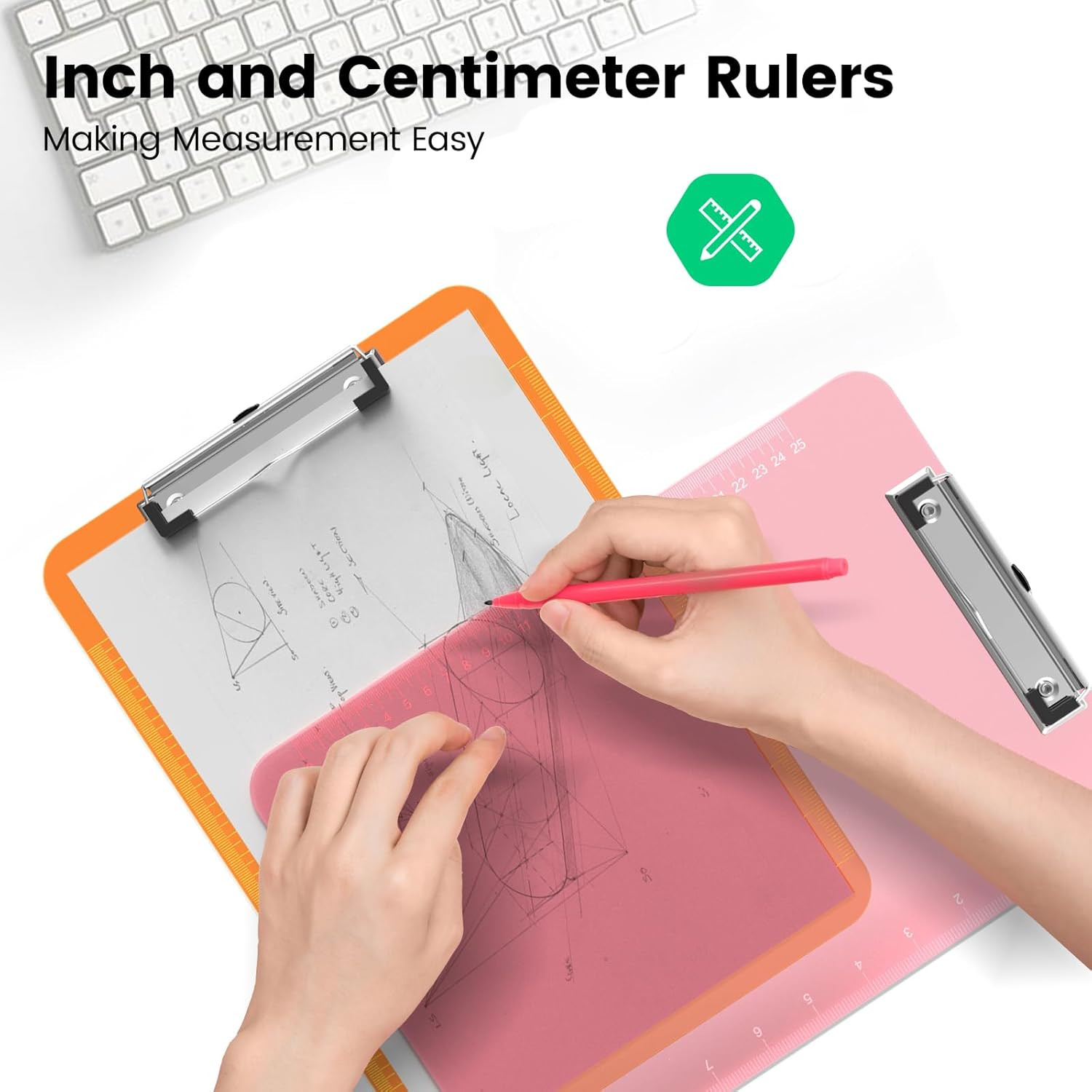 Bulk Clipboards Set of 6, 8.5X11 Plastic Colored Clear Clip Board with Ruler, Su