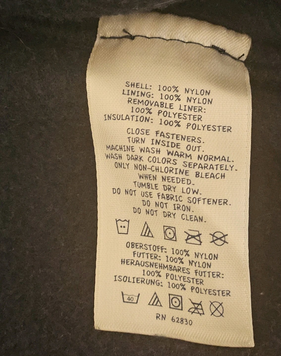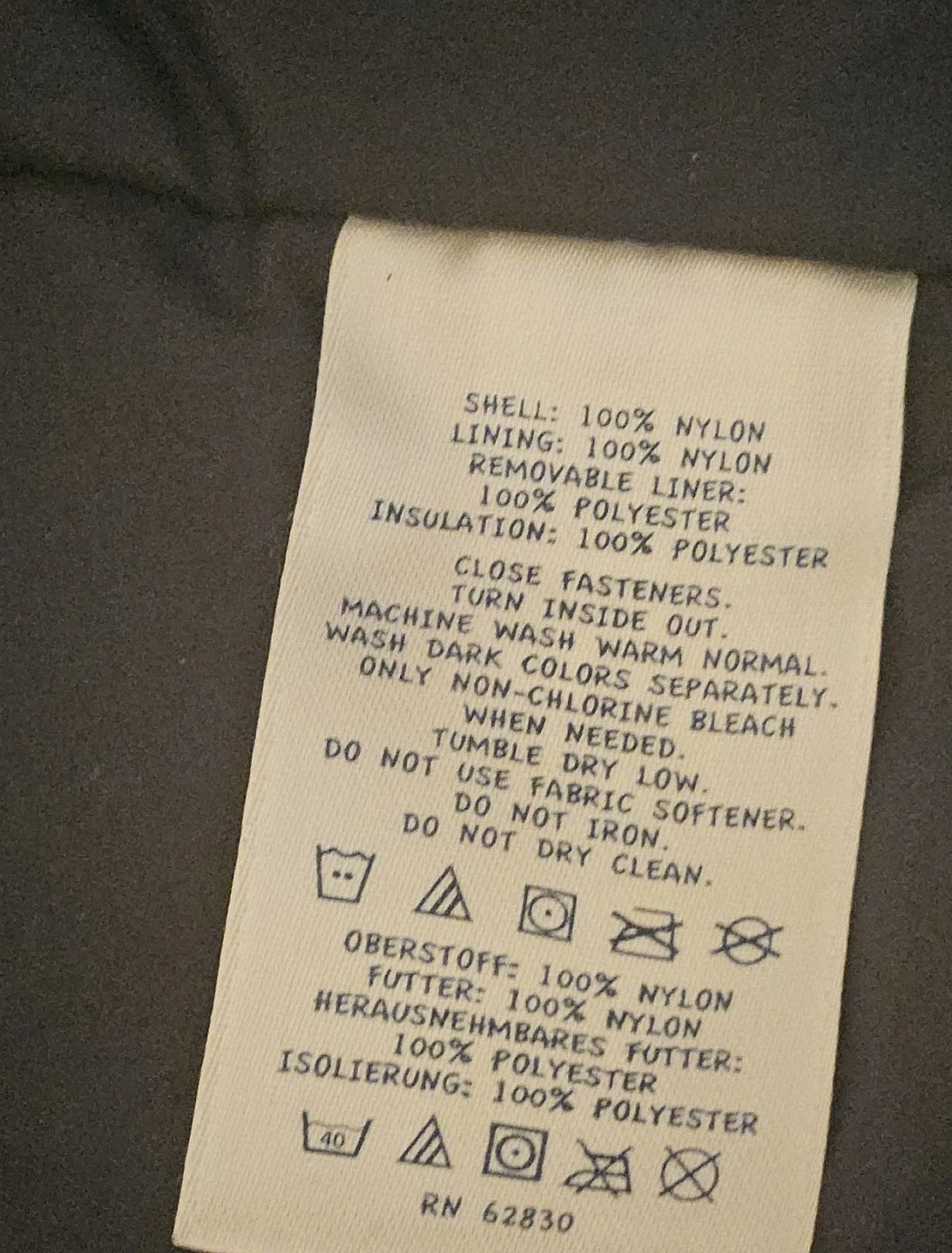 Outer Shell Material: 100% Nylon