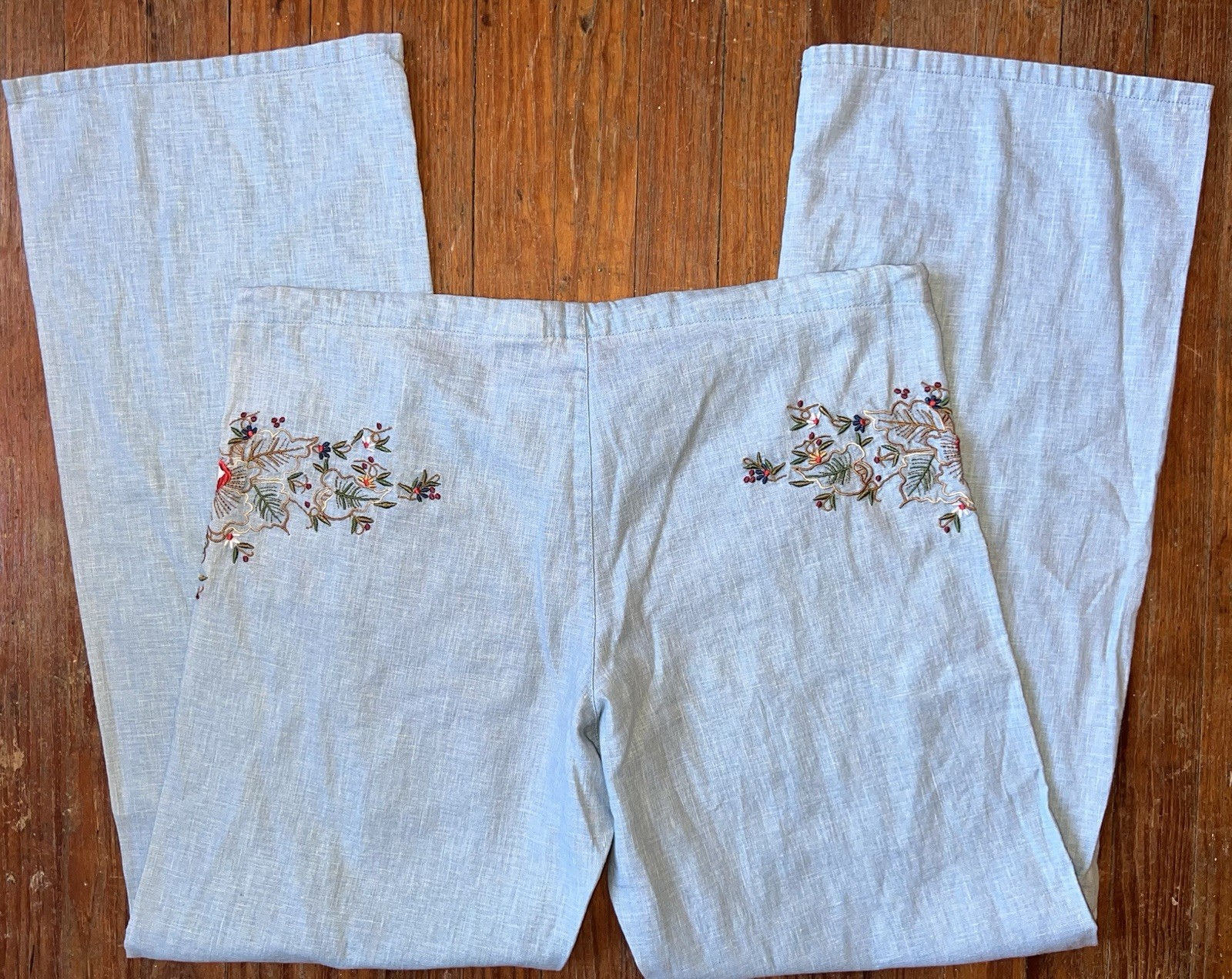 Vintage Women s Embroidered BONGO Cotton/Linen Blend Pants Size Medium