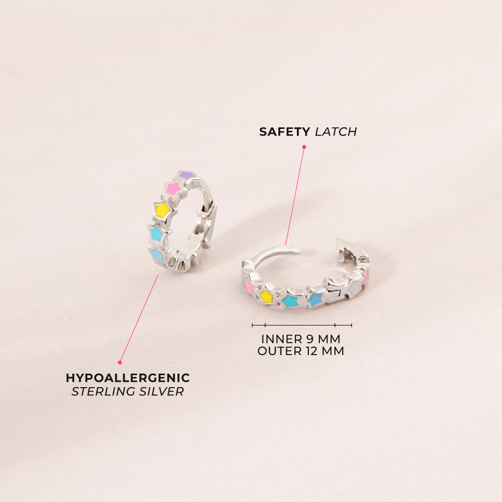 как выглядит Star 9mm Toddler / Kids Earrings Hoop Enamel - Sterling Silver фото