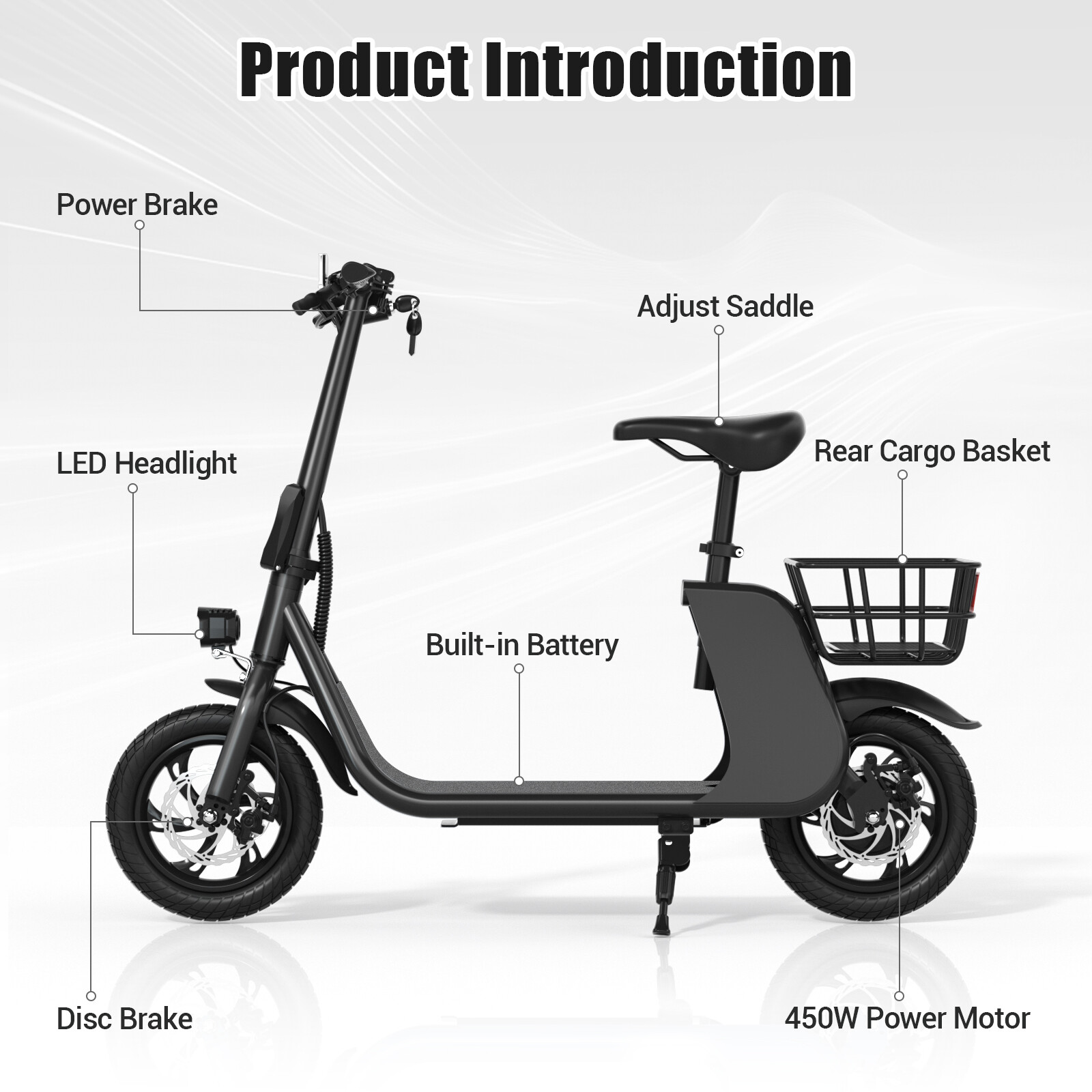 450W Adults Sports Electric Scooter with Seat Electric Moped E-bike E-Scooter US